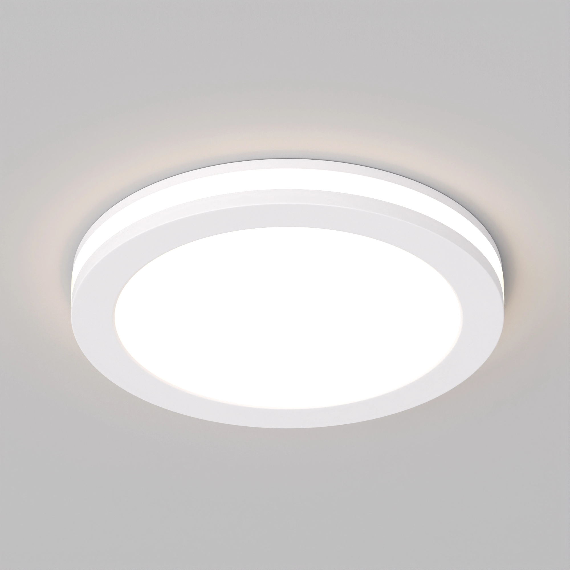 Круглый светильник с контурным свечением. Корпус IP44 белый + вставка поликарбонат PC. Цвет БЕЛЫЙ ТЁПЛЫЙ 3000К, св.поток 1050-1200 лм, угол 120°+180°. Питание 180-240VAC, 15Вт (драйвер 400mA 26-40V в комплекте). Размеры 115х40 мм, установка в отв.105 мм, высота мин.40 мм.
