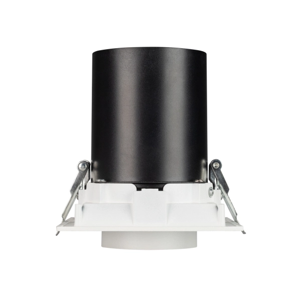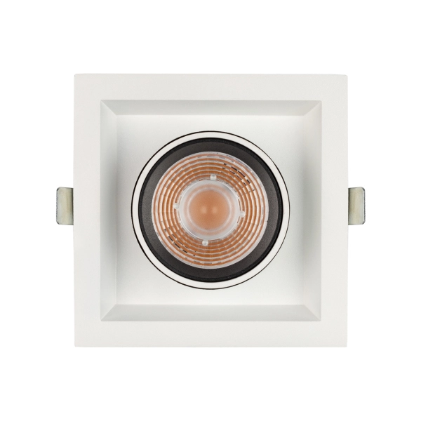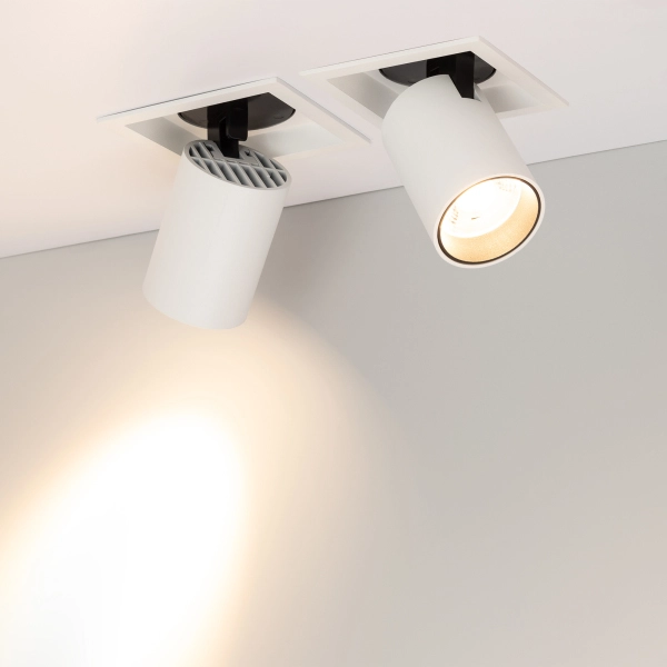 Поставка под заказ от 100 шт. Встраиваемый поворотный выдвигающийся светильник для потолка. Мощность 10 Вт, св. поток 900 лм, 90 лм/Вт, теплый 3000 K, CRI>90, угол 20°, напряжение питания 230 В. Белый квадратный корпус из алюминия, экран PC, степень защиты IP20. Размер (Д×Ш×В) 112×112×127 мм. Монтаж встраиваемый, установочное отверстие Ø 100 мм. Драйвер 30-48 В, 250 мА, пульсация <1%.