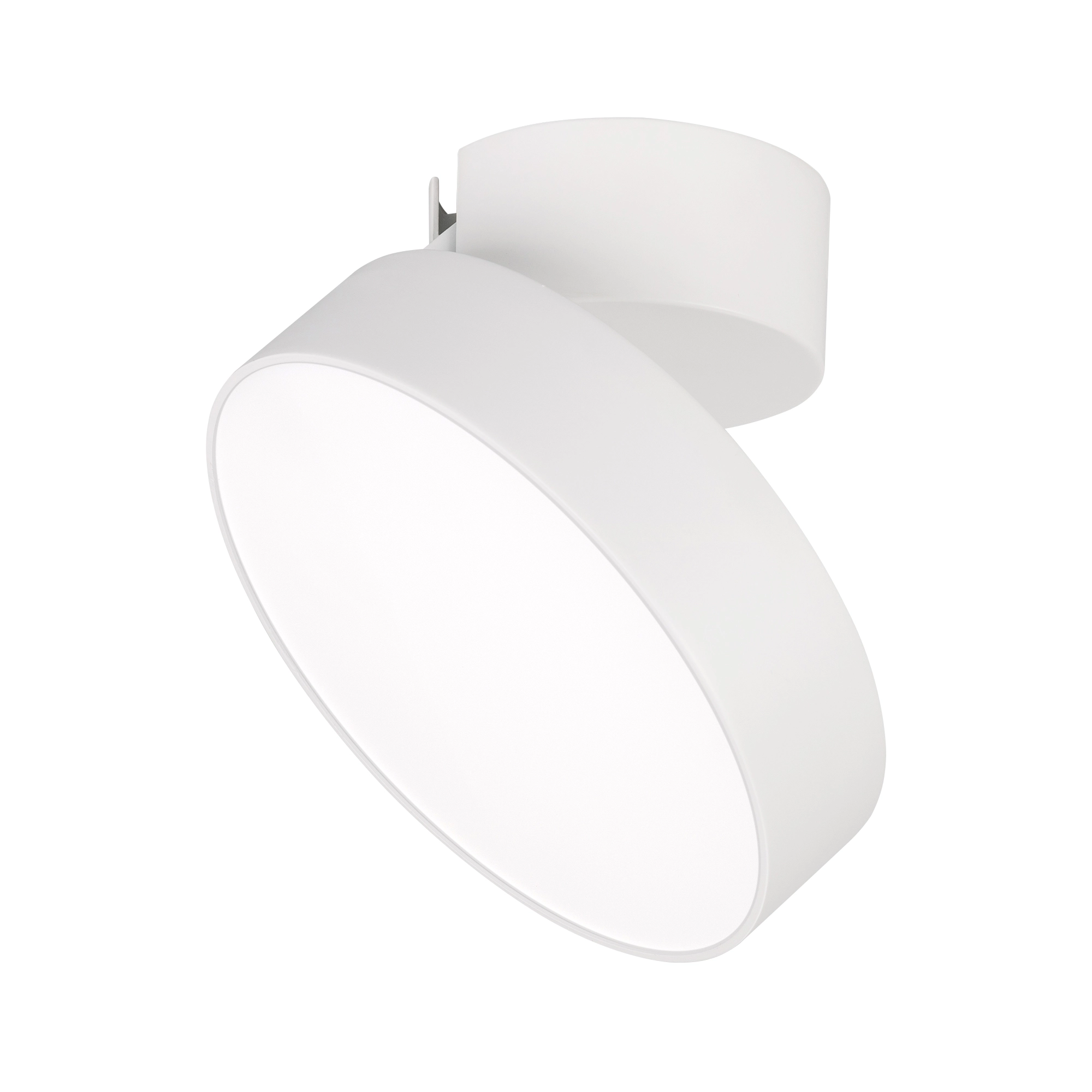 Накладной откидной светильник 16Вт, белый круглый корпус. Цвет ТЕПЛЫЙ БЕЛЫЙ 3000K, св.поток 1280лм, CRI(Ra)>90, угол 110°. Размер светильника Ф175x38мм, размер чаши Ф95x45мм. Питание AC220-240V, 16Вт, драйвер встроенный (400mA, 30-42V). Поворачивается вокруг своей оси на 350° и отклоняется на 90°.