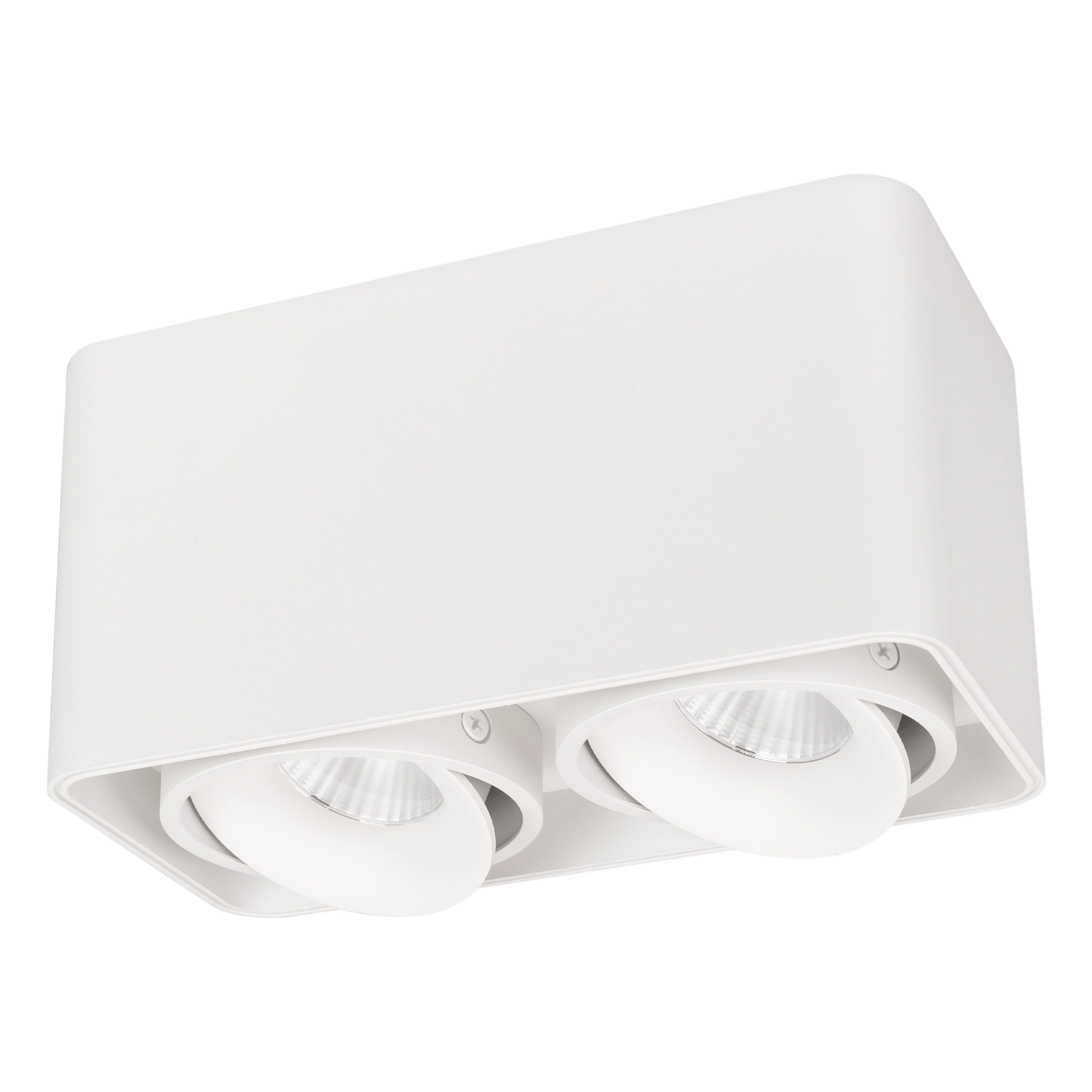 Накладной интерьерный светильник. Мощность 16 Вт, св. поток 1490 лм, 98 лм/Вт, дневной 4000 K, CRI>90, угол 45°, регулируемое направление луча 30°, напряжение питания 230 В. Белый прямоугольный корпус из алюминия, степень защиты IP20. Размер: длина 195 мм, ширина 100 мм, высота 100 мм. Монтаж накладной. Драйвер 26-40 В, 400 мА, пульсация <5%.