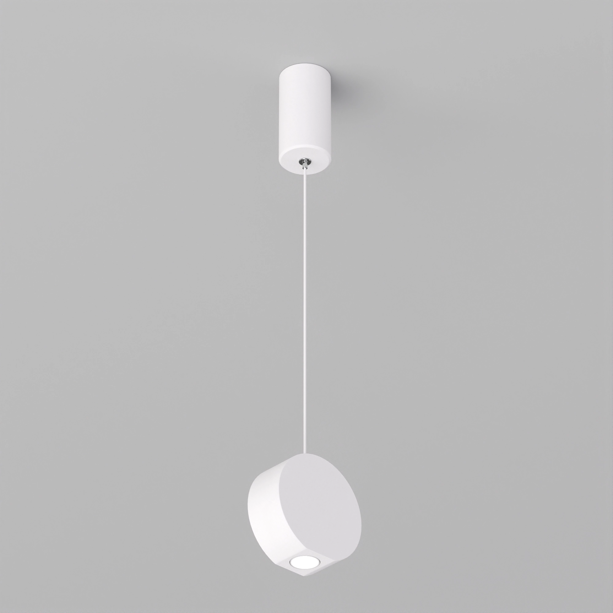 Подвесной светильник. Мощность 9 Вт, св. поток 650 лм, 73 лм/Вт, теплый 3000 K, CRI>80, угол 39°, напряжение питания 230 В. Белый круглый корпус из алюминия, экран , степень защиты IP40. Размер: диаметр 100 мм, высота 97 мм, ширина 40 мм. Монтаж подвесной, длина подвеса 1500мм, регулируемая. Габариты чаши Ø50x95 мм. Драйвер 28-42 В, 250 мА, пульсация <5%.