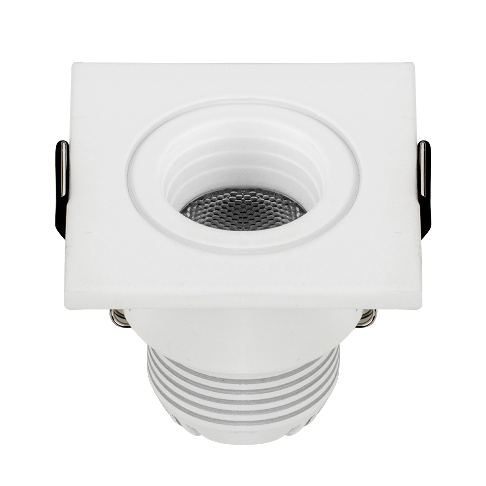 Врезной квадратный мебельный светильник 3Вт, корпус белый алюминий. Цвет ДНЕВНОЙ 4000-4500K. Светодиод 1х3W CREE XPE. Св.поток 140-160лм, угол 30°. Питание 110-240VAC, 3Вт, 700mA 3-5V, драйвер в комплекте. Размеры 46x46x48 мм, врезное отверстие d39 мм.