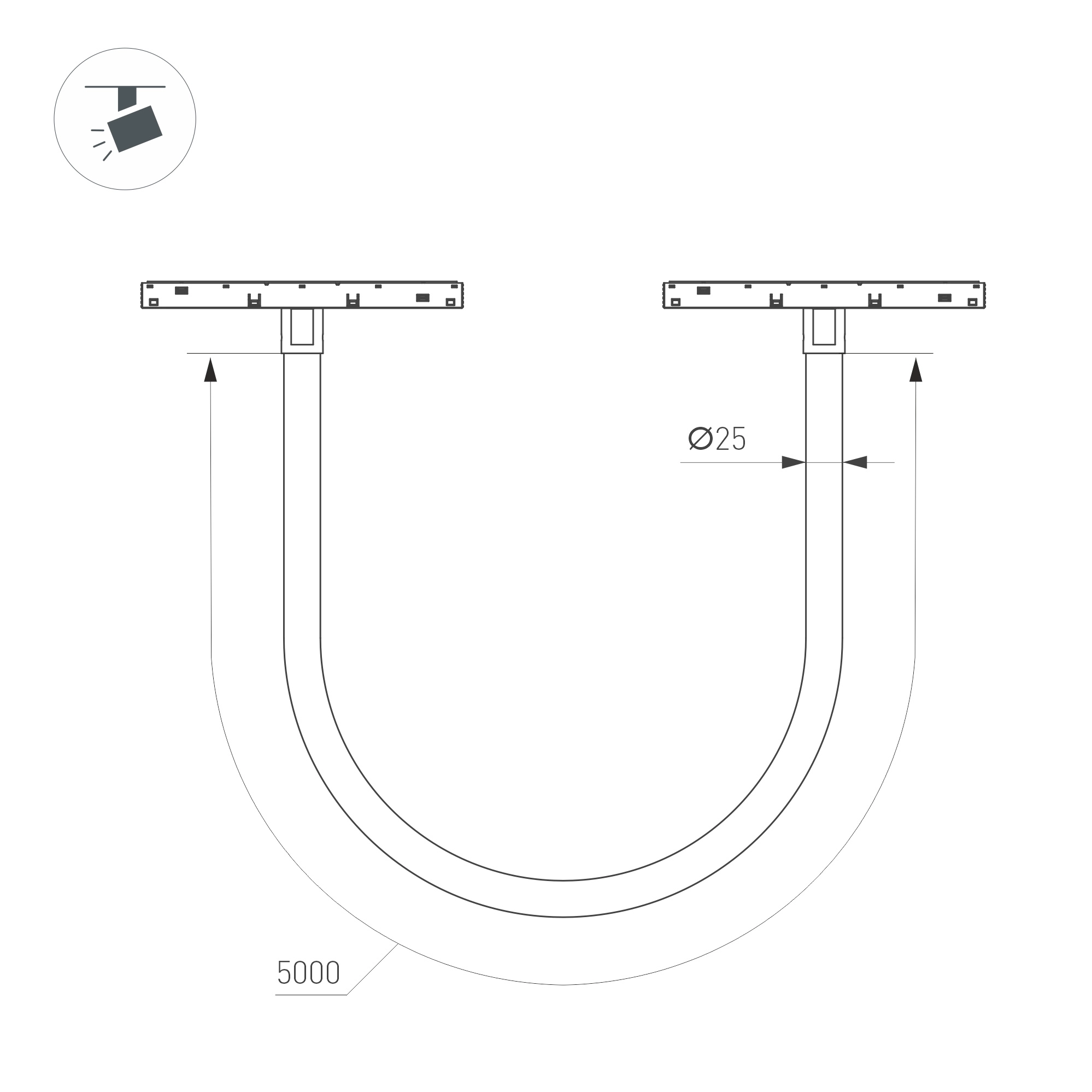 Светильник MAG-ORIENT-TUBE-ELASTIC-R25-L5000-70W Warm3000 (BK, 360 deg, 48V)