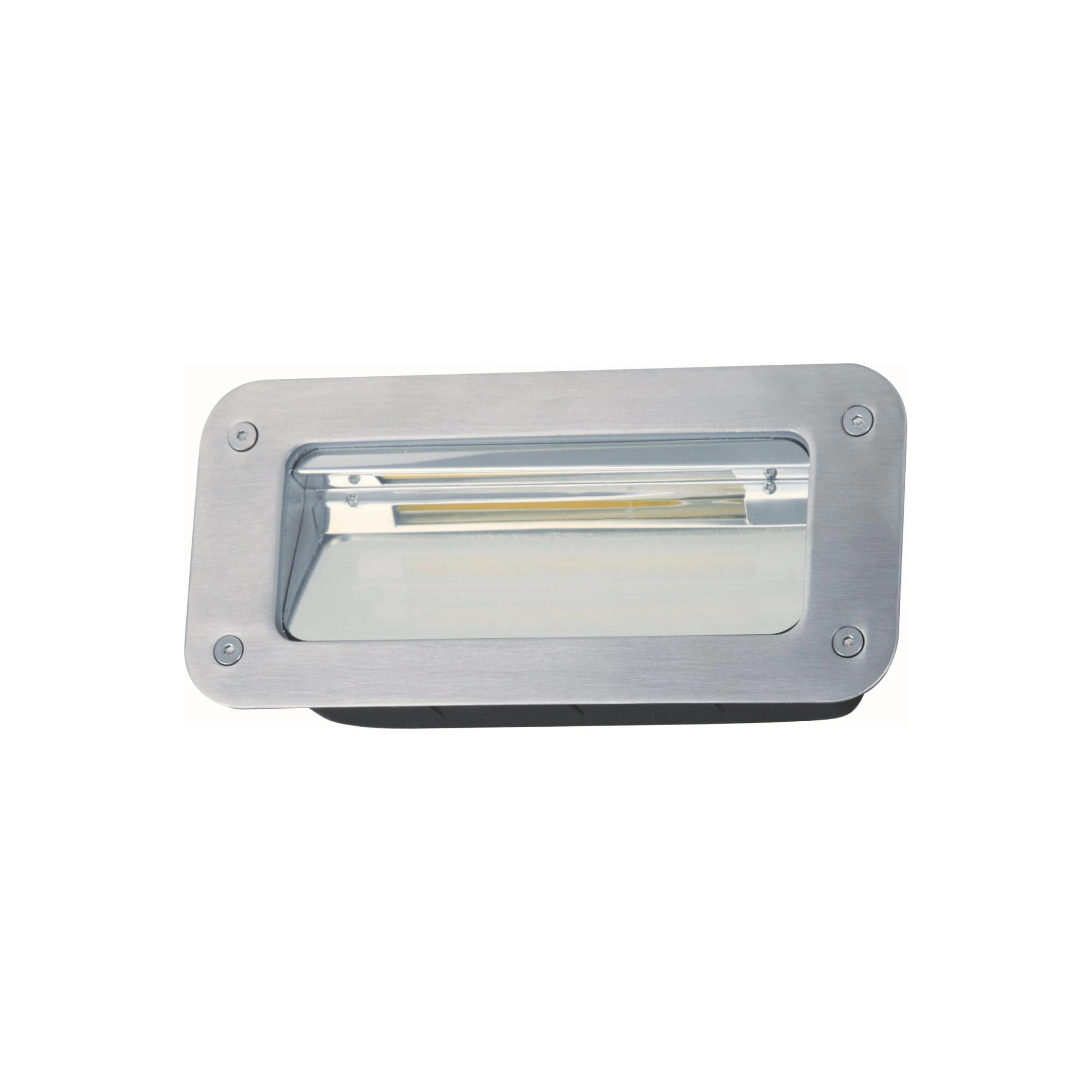 Светильник встраиваемый для наружного и внутреннего использования. Корпус изготовлен из алюминиевого сплава, с внешней стороны защищен пластиковым кожухом; стекло - поликарбонатное матовое.