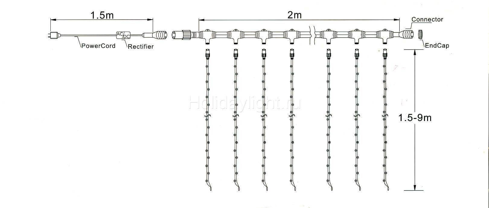 Светодиодная гирлянда занавес LC-1920 WS 2х1,5 м 380 LED IP54 теплый