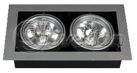 Встраиваемый плоско-поворотный светильник серии "Карданы". Предназначен для установки внутри помещений. Источником света являются 2 низковольтные 12V галогенные лампы AR111 максимальной мощностью 2*75W . Лицевая часть светильника изготовлена из алюминиевого сплава, корпус - из листовой стали. Для подключения ламп на 12V необходим электронный понижающий трансформатор GD-9928 или GD-03 .