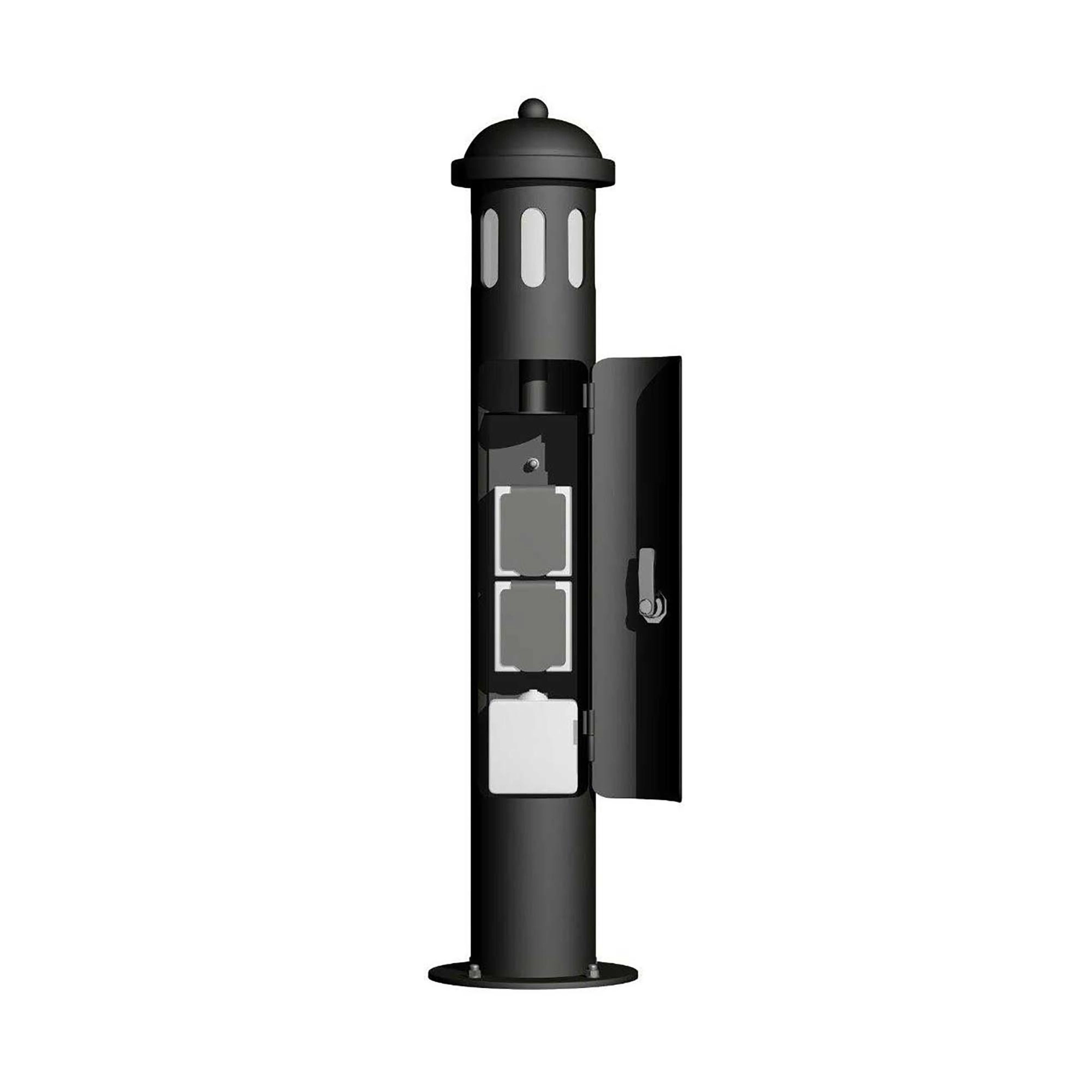 наличие дверцы с ключом исключает несанкционированный доступ посторонних, что позволяет безопасное использование розеток на на неохраняемых и неогороженных территориях.