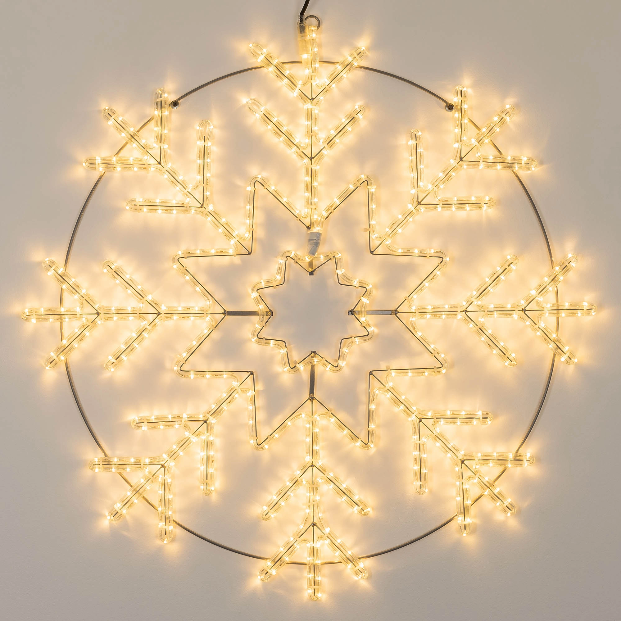 Светодиодная фигура СНЕЖИНКА. Размер 950x950 мм. Цвет светодиодов ТЕПЛЫЙ БЕЛЫЙ (3000 К), постоянное свечение. 540 светодиодов. Напряжение питания 230 В, потребляемая мощность 33 Вт, степень пылевлагозащиты IP65. Фигура укомплектована проводом питания для подключения к сети 230 В (без вилки питания).