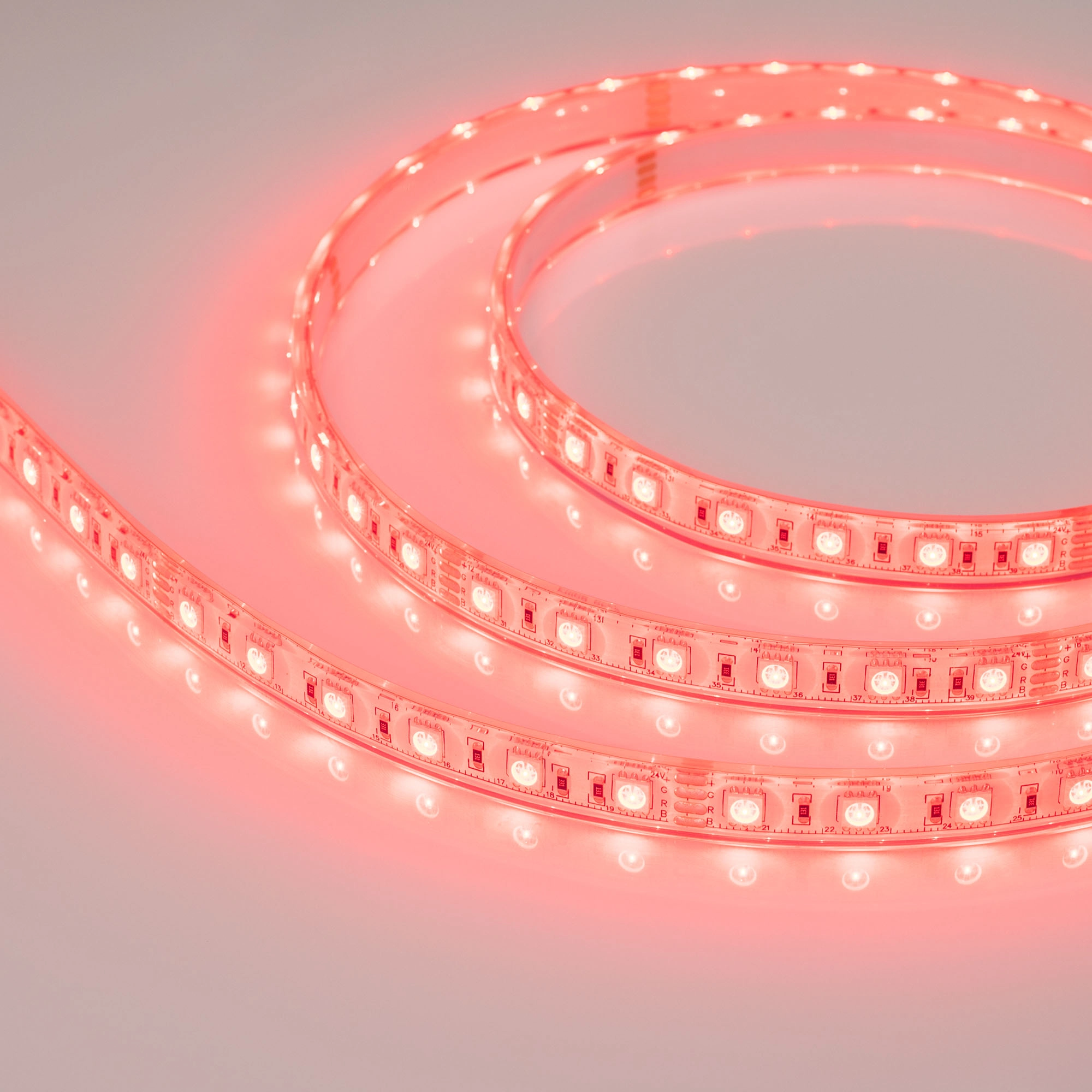 Мультицветная светодиодная герметичная лента RTW серии B60, IP67 (PU - сплошной полиуретан). Светодиоды SMD 5060, 60 шт/м, белая плата шириной 10 мм, скобы, скотч отсутствует. Цвет RGB, угол 120°. Питание 24 В, мощность 14.4 Вт/м (72 Вт на 5 м). Размеры 5000x12.5x5.6 мм. Мин. отрезок 100 мм, 6 светодиодов. Цена за 1 м.