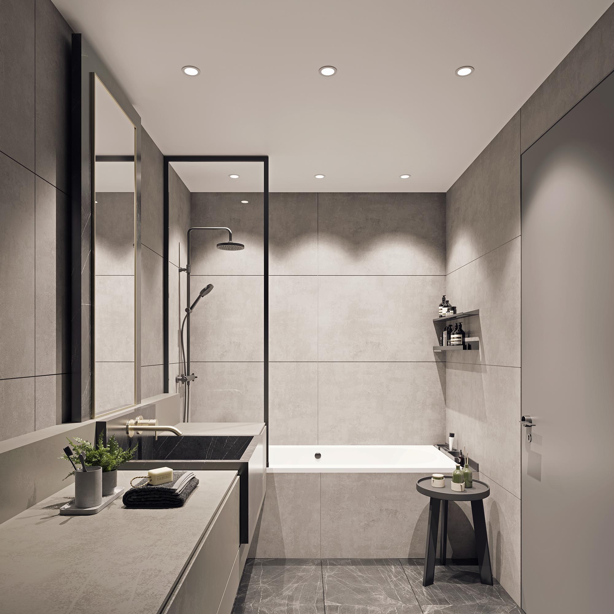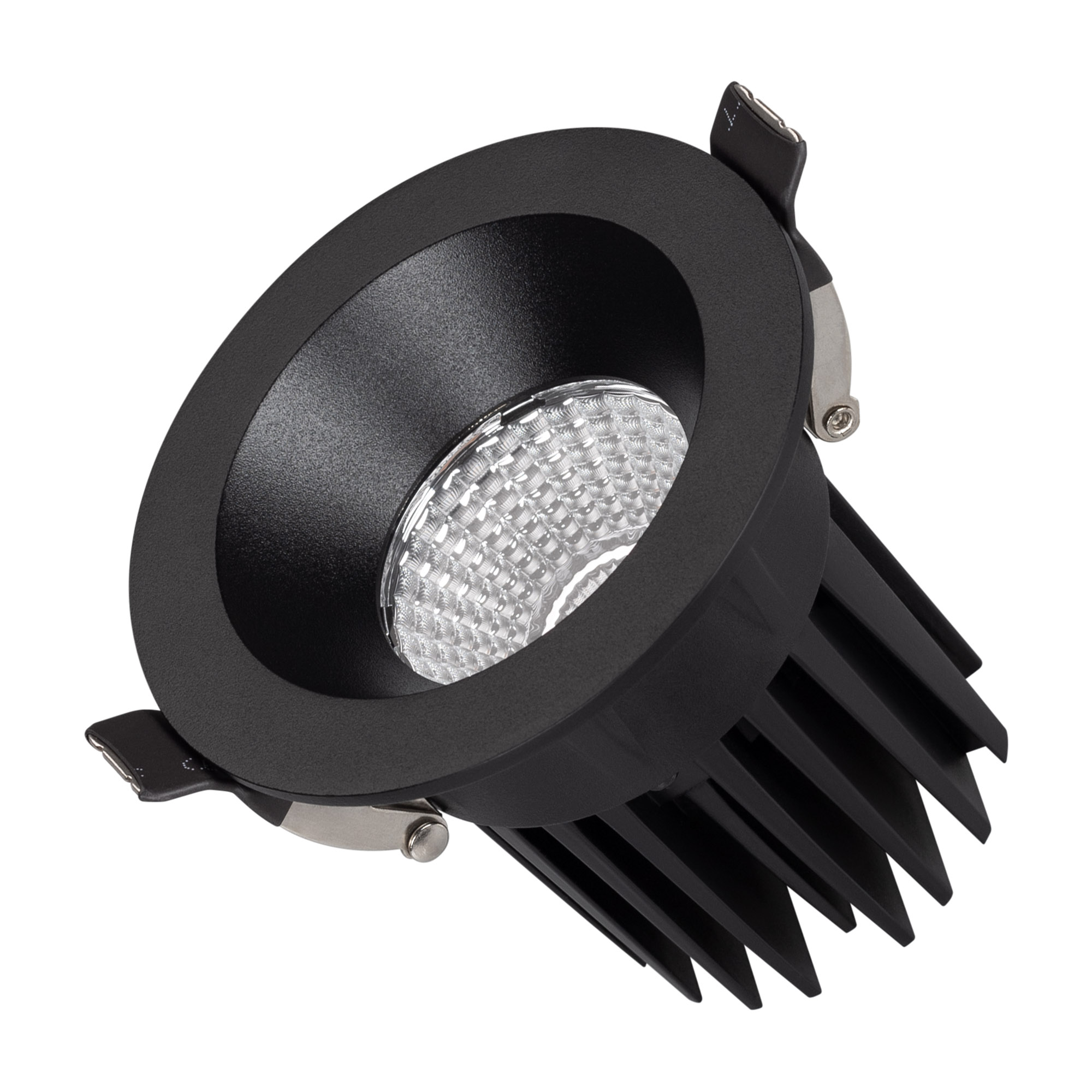 Встраиваемый светильник даунлайт. Мощность 10 Вт, св. поток 910 лм, 90 лм/Вт, дневной 4000 K, CRI>90, угол 60°, напряжение питания 230 В. Чёрный круглый корпус из алюминия, экран PMMA, степень защиты IP54. Размер: диаметр 86 мм, высота 80 мм. Монтаж встраиваемый, установочное отверстие: диаметр 80 мм. Драйвер 20-40 В, 250 мА, пульсация <1%.