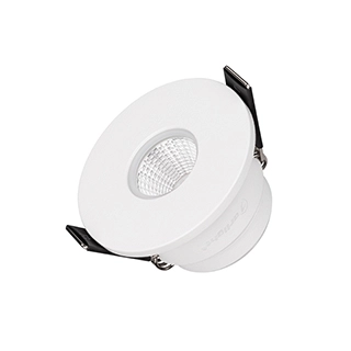 Встраиваемый светильник даунлайт. Мощность 5 Вт, св. поток 400 лм, 80 лм/Вт, дневной 4000 K, CRI>90, угол 38°, напряжение питания 230 В. Белый круглый корпус из алюминия, экран PMMA, степень защиты IP54. Размер: диаметр 54 мм, высота 30 мм.  Монтаж встраиваемый, установочное отверстие: диаметр 45 мм. Драйвер 8-12 В, 400 мА, пульсация <2%.