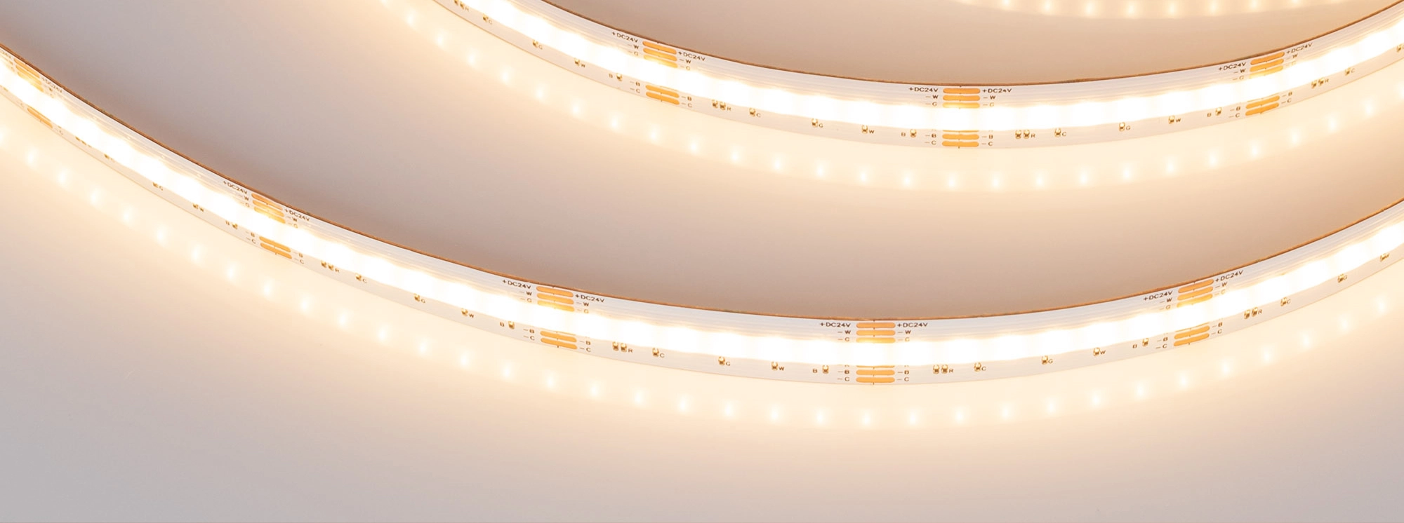 Светодиодная лента сплошного свечения COB серии X840. Светодиоды CSP, 840 шт/м, белая плата шириной 5 мм, скотч 3M. Цвет RGB + MIX ТЕПЛЫЙ 2700K/БЕЛЫЙ 6000K, индекс цветопередачи CRI>90, угол 160°. Питание 24 В, мощность 16 Вт/м (80 Вт на 5 м). Размеры 5000x12x1.8 мм. Мин. отрезок 41.6 мм. Цена за 1 м. Обязательна установка на профиль.