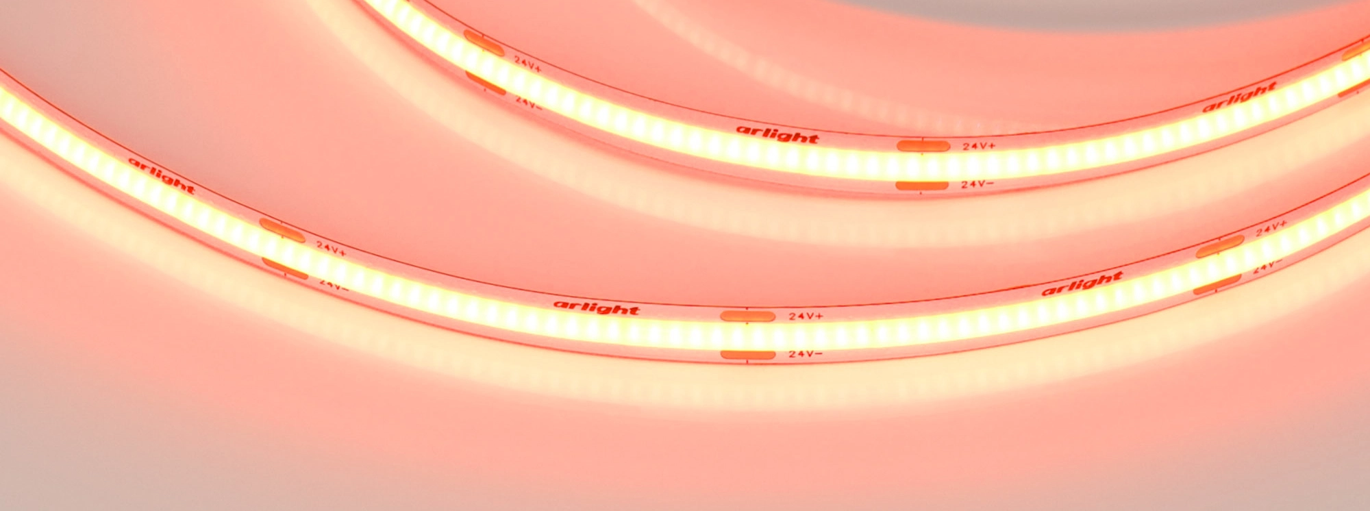 Светодиодная лента сплошного свечения COB серии X480. Светодиоды CSP, 480 шт/м, белая плата шириной 8 мм, скотч 3M. Цвет ОРАНЖЕВЫЙ 610 нм, угол 160°. Питание 24 В, мощность 8 Вт/м (40 Вт на 5 м). Размеры 5000х8х1.8 мм. Мин. отрезок 50 мм. Цена за 1 м. Рекомендуется установка на профиль.