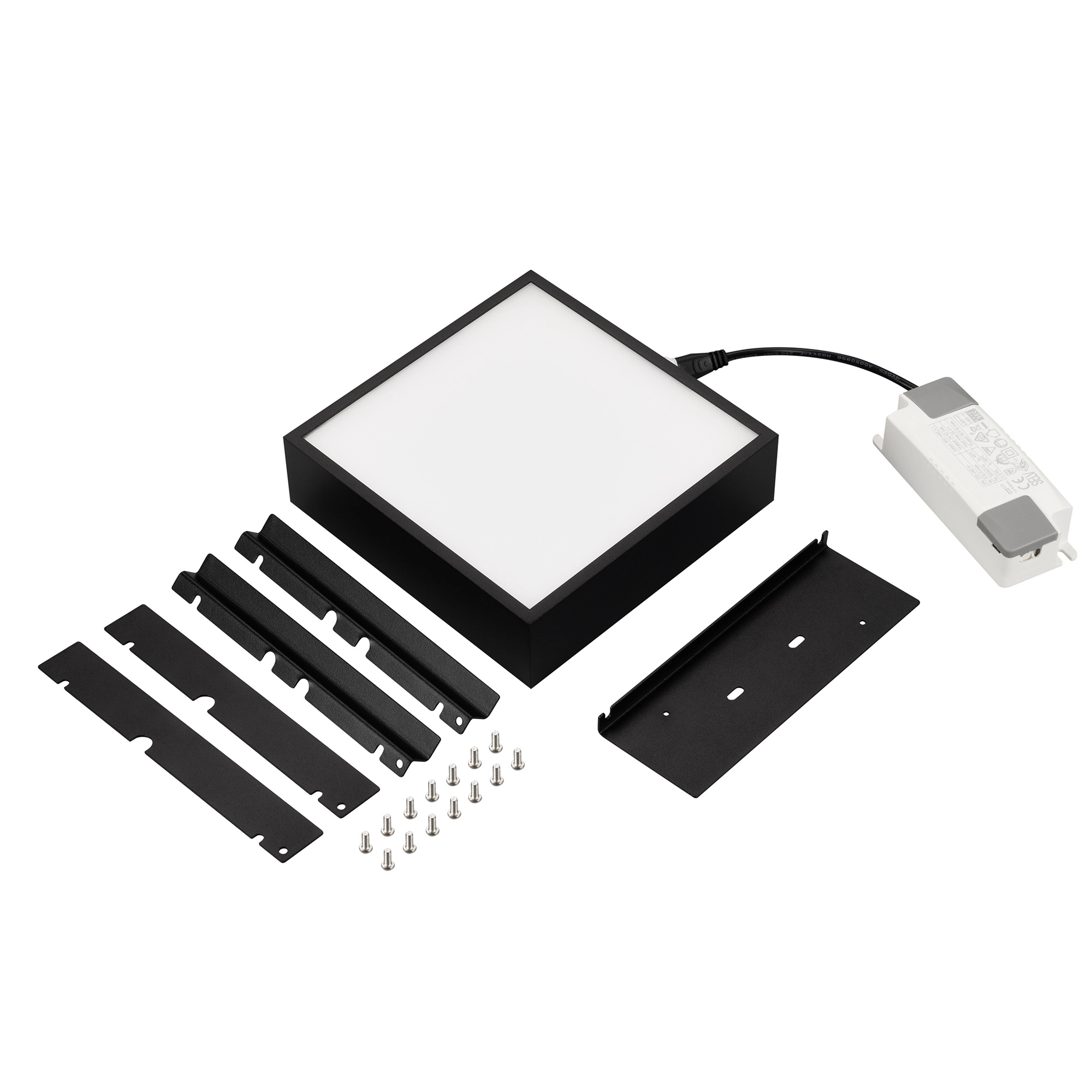 Встраиваемый светильник даунлайт для установки в потолки Грильято с размером ячейки 150х150 мм и высотой направляющих 30, 40 или 50 мм. Мощность 18 Вт, св. поток 1700 лм, 94 лм/Вт, тёплый 3000 K, CRI>90, угол 100°, напряжение питания 230 В. Чёрный квадратный корпус из алюминия, степень защиты IP40. Размер: длина 140 мм, ширина 140 мм, высота 40 мм. Монтаж встраиваемый, установочное отверстие: длина 140 мм, ширина 140 мм. Драйвер 24-42 В, 450 мА, пульсация <1%.