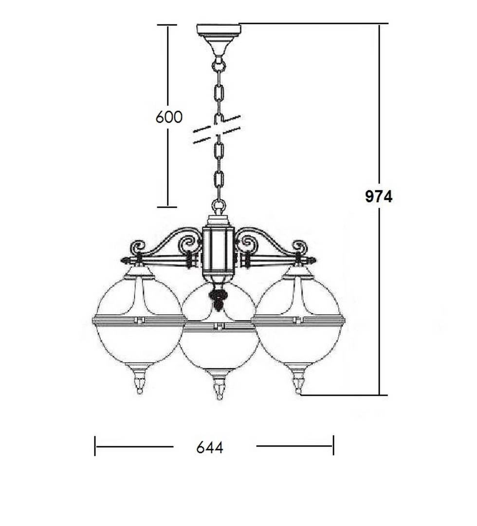 —Подвесной светильник YAOHUA LUX, Черный, Классика, 88470/3 Bl