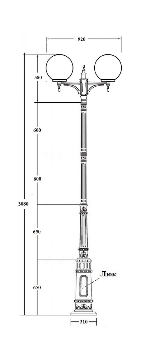 Фонарный столб YAOHUA LUX, Черный с золотой патиной, Классика, 88210PGA 09 Е7 Gb