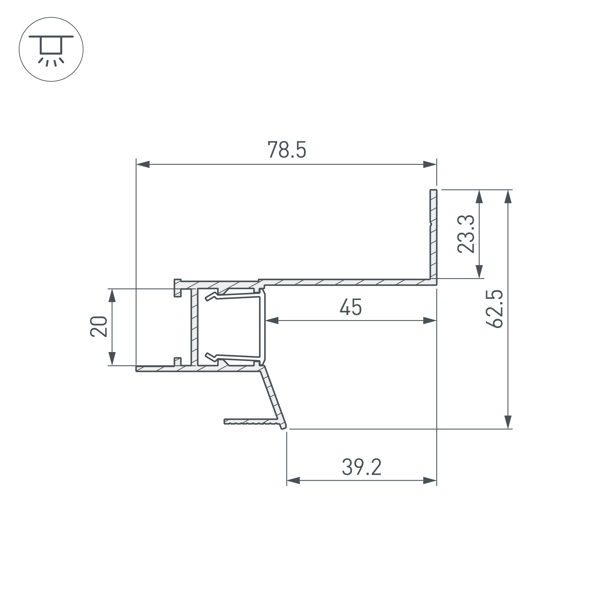 Алюминиевый анодированный встраиваемый профиль для светодиодных лент и линеек. Цвет- белый. Габаритные размеры (L×W×H): 3000х78,5х62,5 мм. Ширина площадки для ленты 20 мм. Экраны, заглушки и другие аксессуары приобретаются отдельно. Цена за 1 метр.