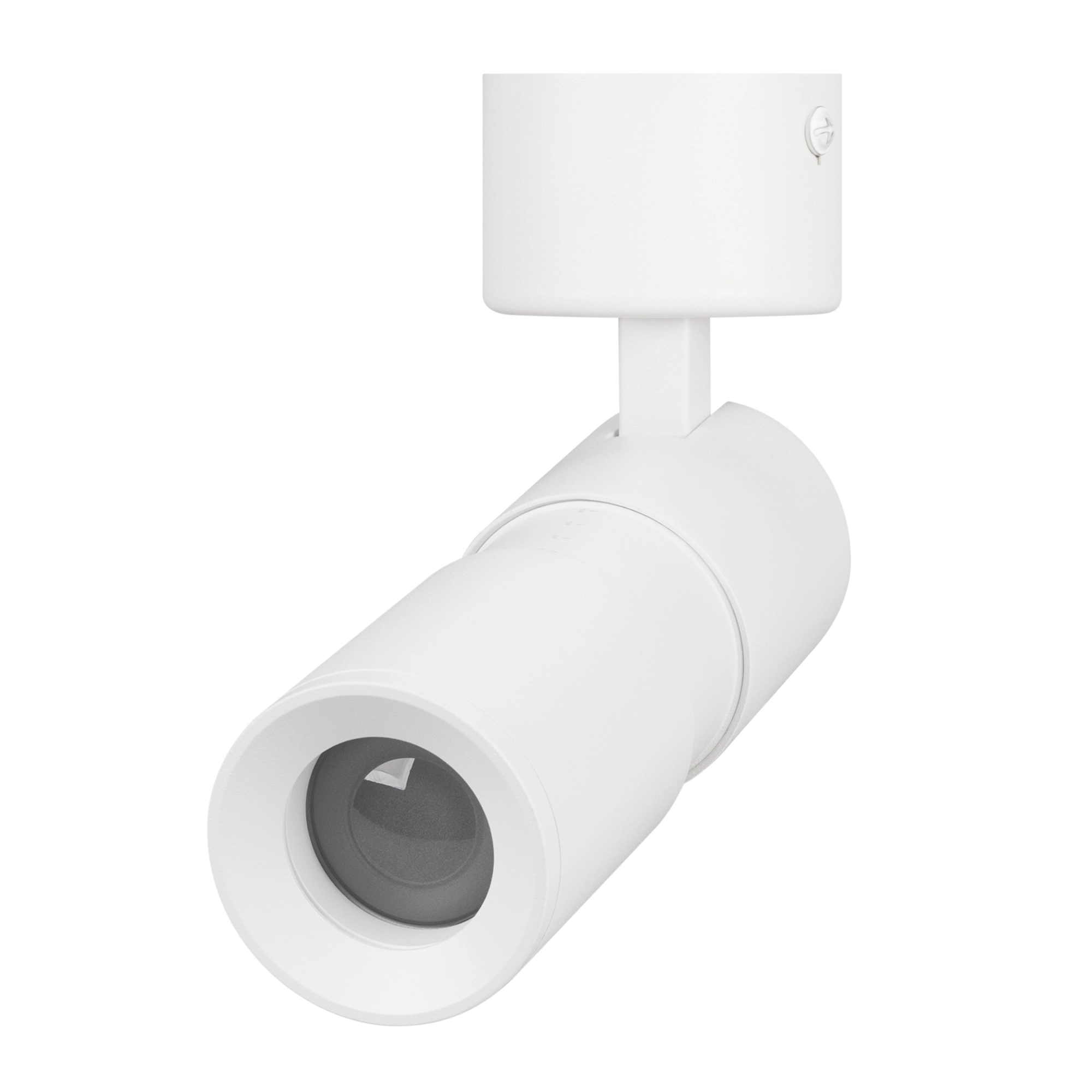 Накладной откидной поворотный светильник, 12Вт. Цвет свечения ТЕПЛЫЙ 3000K, световой поток 720 лм, 60 лм/Вт, регулируемый угол 8-80°, CRI>90. Корпус круглый, металл, цвет белый, IP20. Размеры DxHxL Ø55x132~163,5 мм. Размер чаши Ø60,7x33,5 мм. Входное напряжение AC220-240V, мощность 12Вт. Драйвер встроенный (20-40V, 250 мА).