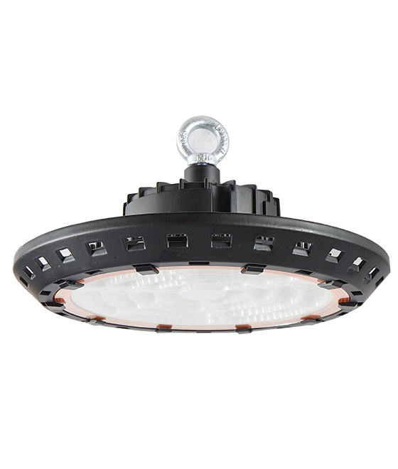Подвесной светодиодный светильник серии HIGH BAY UFO. Источник света - SMD светодиоды высокой яркости (>120 Lm/W по фотометрии). Напряжение : 85-277V/AC.  200W, 6000К, Источник света: SMD2835 LED. Световой поток: 34000Lm, CRI>80Ra, PF>0,95,  Угол излучения, 90° Корпус: алюминиевый сплав, Размер: 400*155мм. IP65. Цвет: черный.