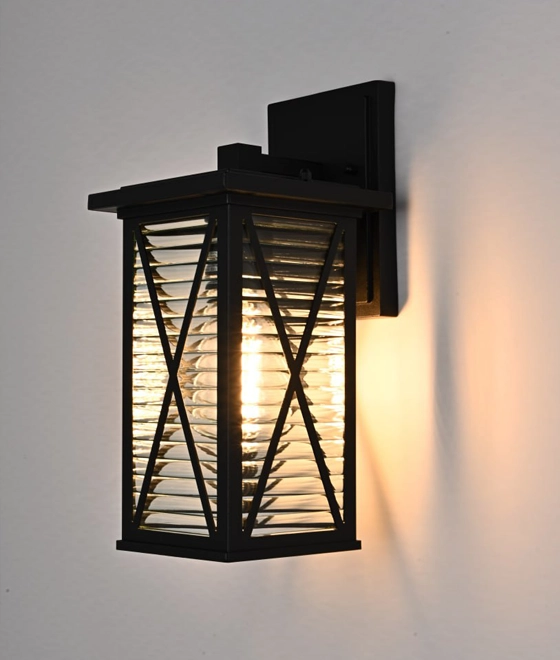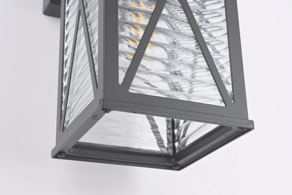 Светильник настенный садово-парковый. Материал: алюминиевый сплав , стекло. Напряжение 220-240V 50Hz. 1*E27. Мощность 60W. Размер S: 145*160*310mm . IP44. Цвет: черный.