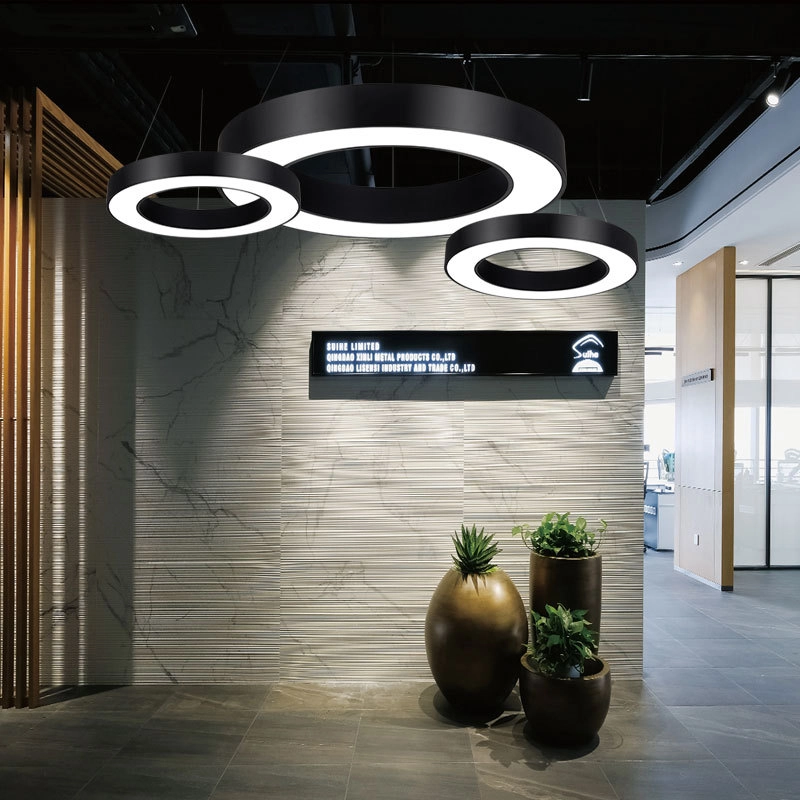 Светодиодные светильники кольцевой формы. Материал: сталь (профиль 100*80)+PC. Источник света: Sanan SMD2835. Световой поток: 11200Lm. Напряжение: АС185-265V. 140W. Температура цвета: 4000К. Класс качества цветопередачи: CRI>80Ra. Размеры: 1200*80мм.  В комплект со светильником входит подвесной механизм и тросики длиной 1.5м. Цвет корпуса:  черный.