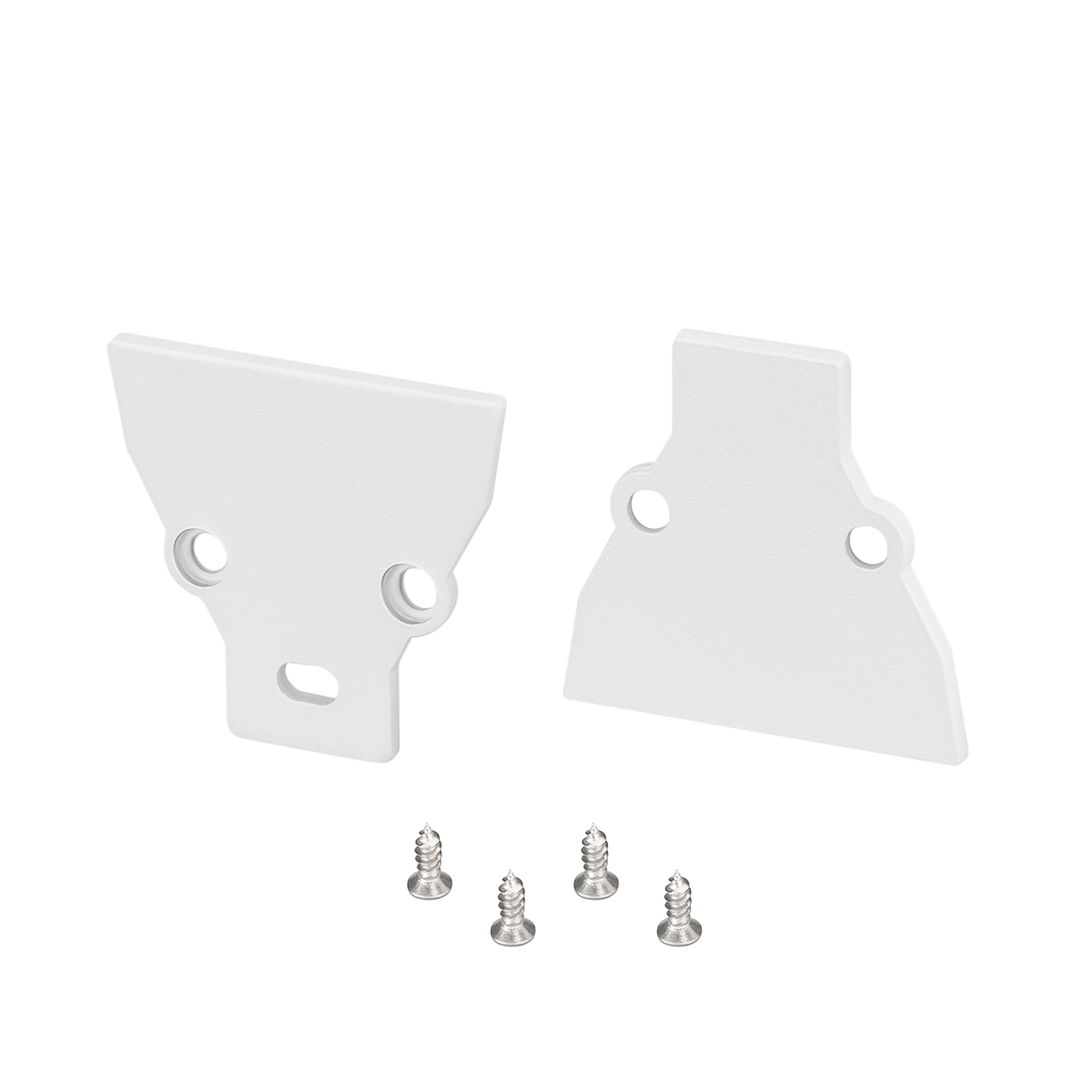 Пара белых заглушек (одна - с отверстием, другая - без отверстия) для профиля COMFORT10-V-FANTOM-2000 WHITE. В комплекте 2 заглушки, 4 винта. Цена за комплект.