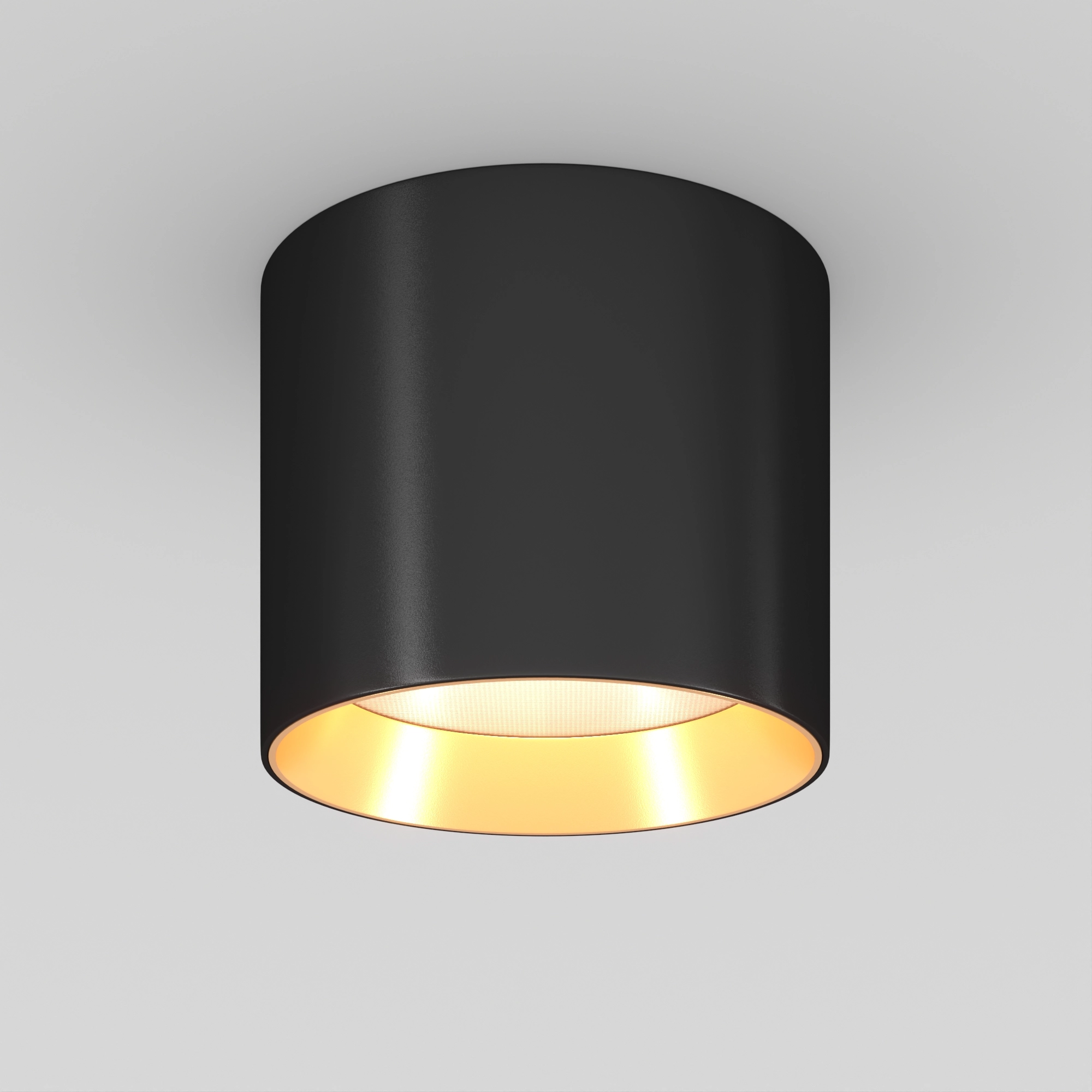 Накладной светильник. Мощность 8 Вт, св. поток 620-640 лм, 80-85 лм/Вт, теплый 2700 K, теплый 3300K, дневной 4000K (переключается), CRI>90, угол 80°, напряжение питания 230 В. Черный круглый корпус из алюминия с золотой вставкой, экран PC, степень защиты IP54. Размер: диаметр 90 мм, высота 75 мм. Монтаж накладной. Драйвер 27-43 В, 200 мА, пульсация < 2 %.