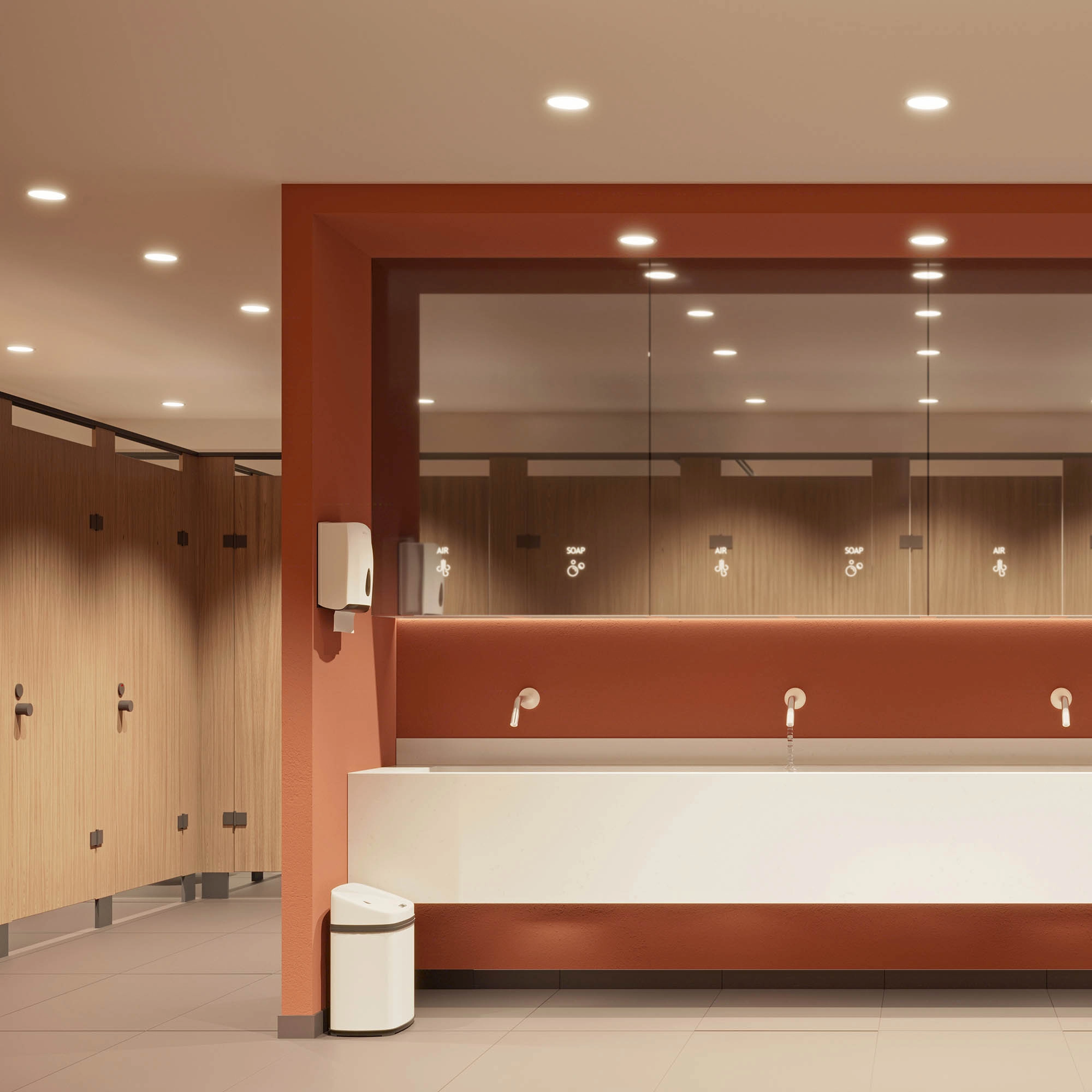 Встраиваемый светильник даунлайт с изменяемой мощностью и цветовой температурой. Мощность 9-12 Вт, св. поток 950-1310лм, 100 лм/Вт, цветовая температура 3000-4000-5700 K, CRI>90, угол 40°, напряжение питания 230 В. Белый круглый корпус, степень защиты IP54. Размер: диаметр 140 мм, высота 80 мм. Монтаж встраиваемый, установочное отверстие: диаметр 122-127 мм. TRIAC-драйвер, пульсация <1%.