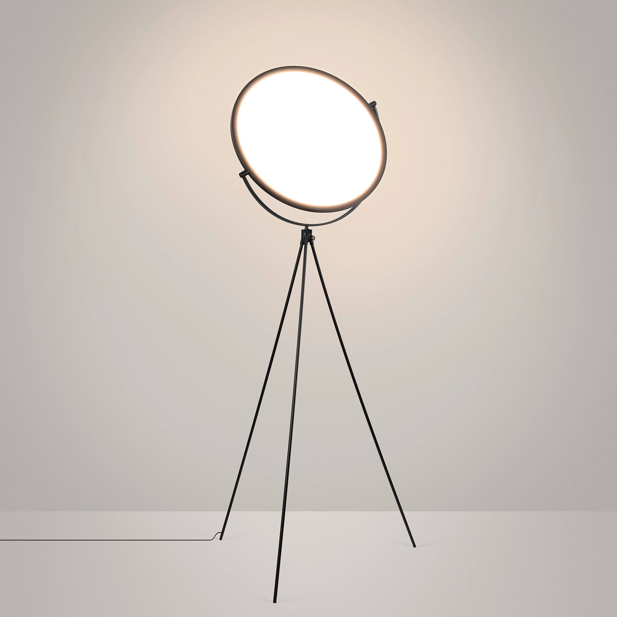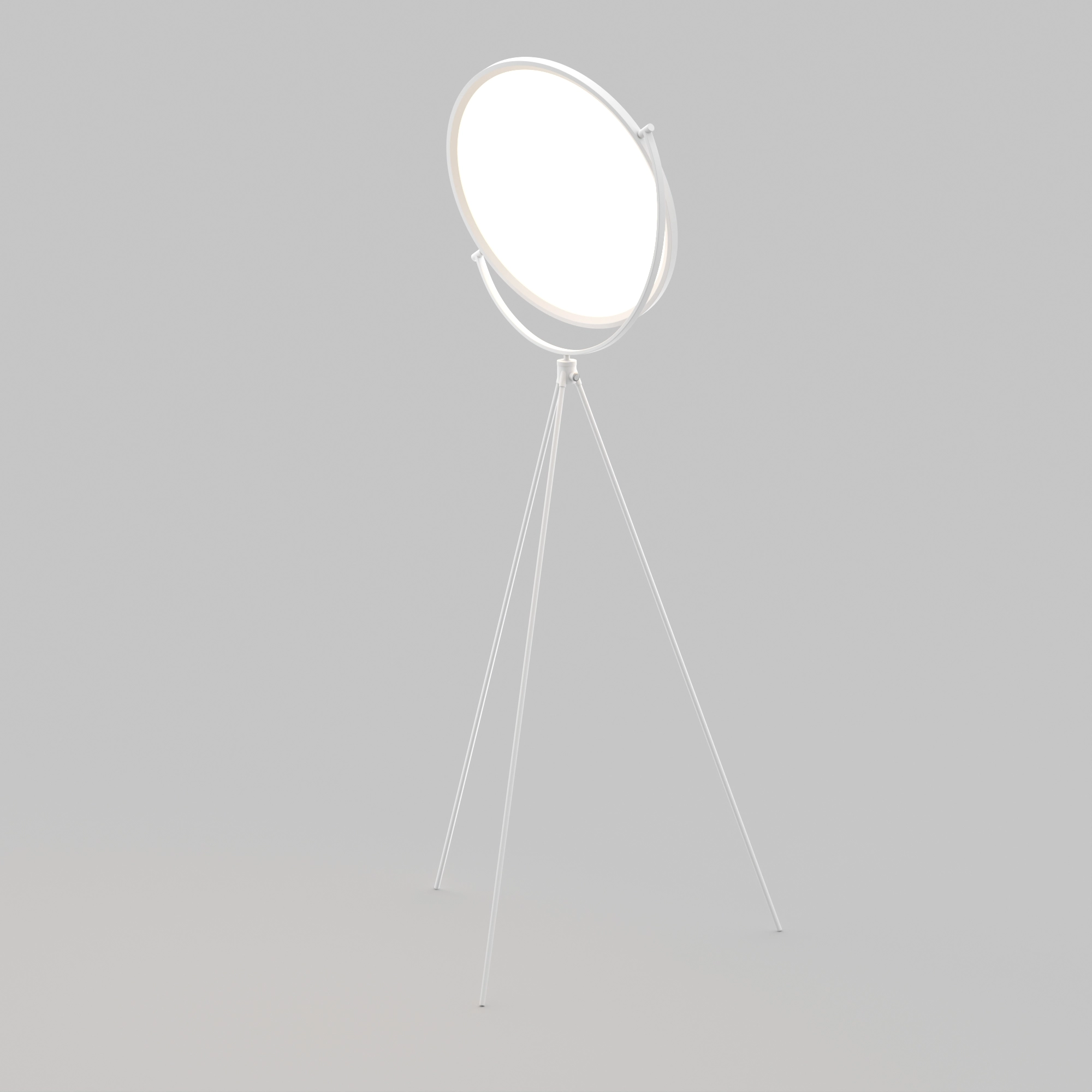 Декоративный напольный светильник с функцией Dim-to-Warm. Мощность 35 Вт, Dim-to-warm 1800K-3000K, CRI>90, угол 120 °, напряжение питания 230 В. Корпус из алюминия белого цвета, экран из PMMA, степень защиты IP20. Размер: диаметр диска 660 мм, диаметр излучающего модуля 595мм, высота с ножкой 1890 м. Длина провода 1300 мм, питание от сети 220-240V. Адаптер в комплекте.