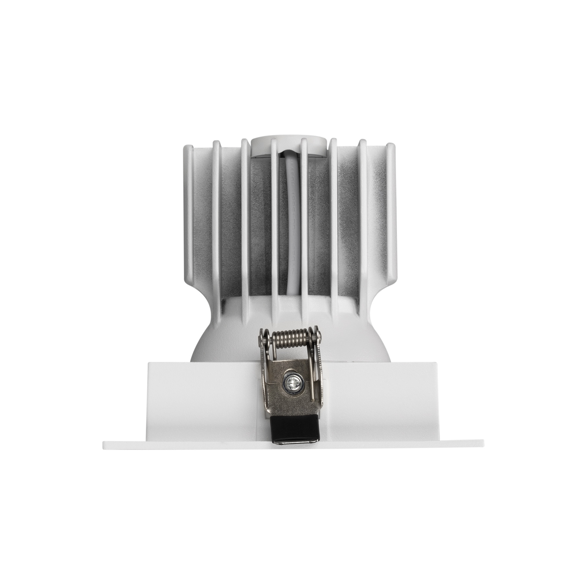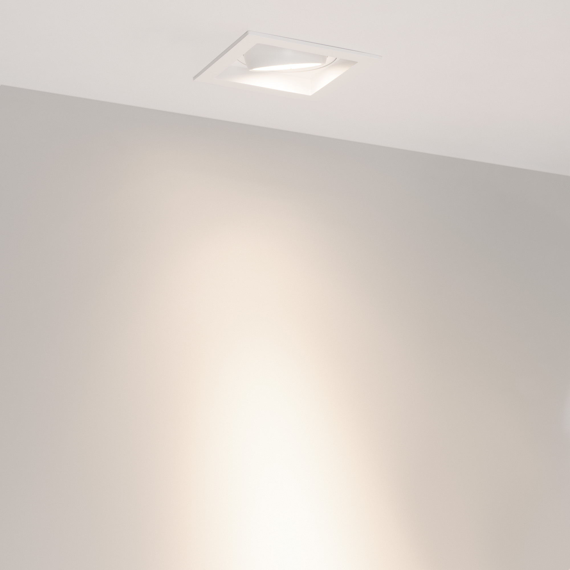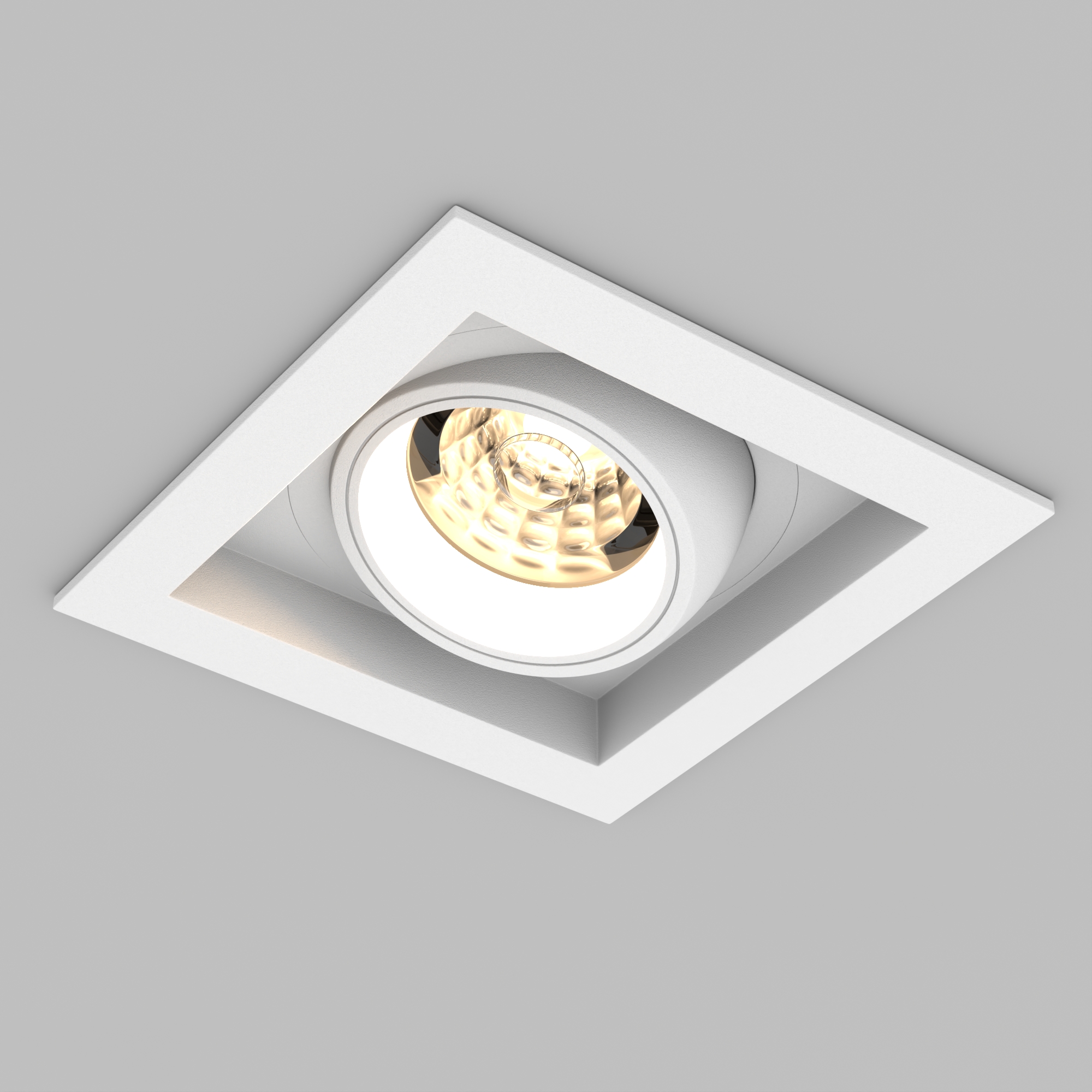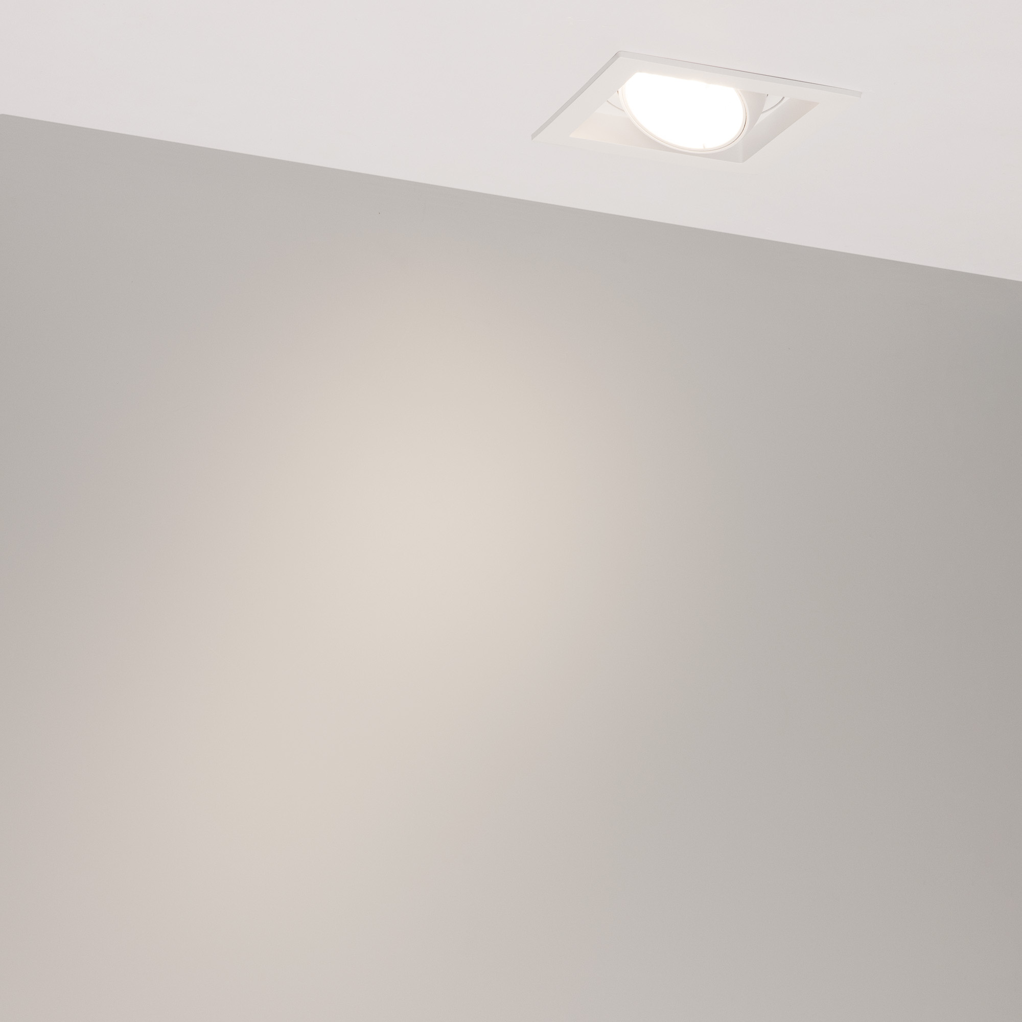 Встраиваемый карданный светильник. Мощность 20 Вт, св. поток 2067 лм, 103 лм/Вт, дневной 4000 K, CRI>92, угол 20°, напряжение питания 230 В. Белый корпус из алюминия, белая вставка, степень защиты IP20. Размер: длина 117 мм, ширина 117 мм, высота 105 мм. Монтаж встраиваемый, установочное отверстие: длина 95 мм, ширина 95 мм. Драйвер 24-42 В, 500 мА, пульсация <2%.