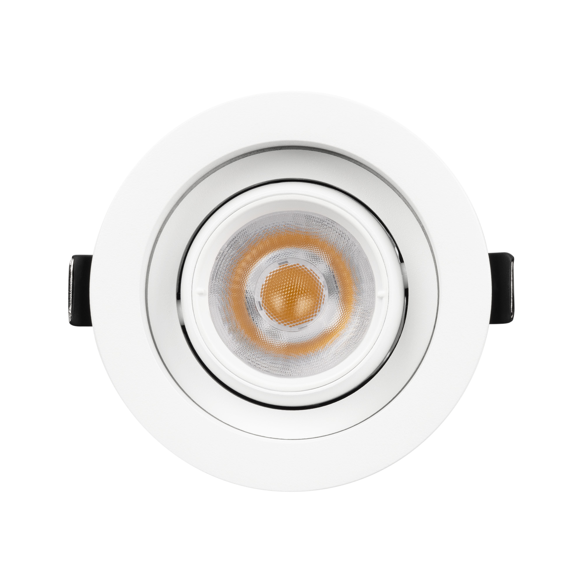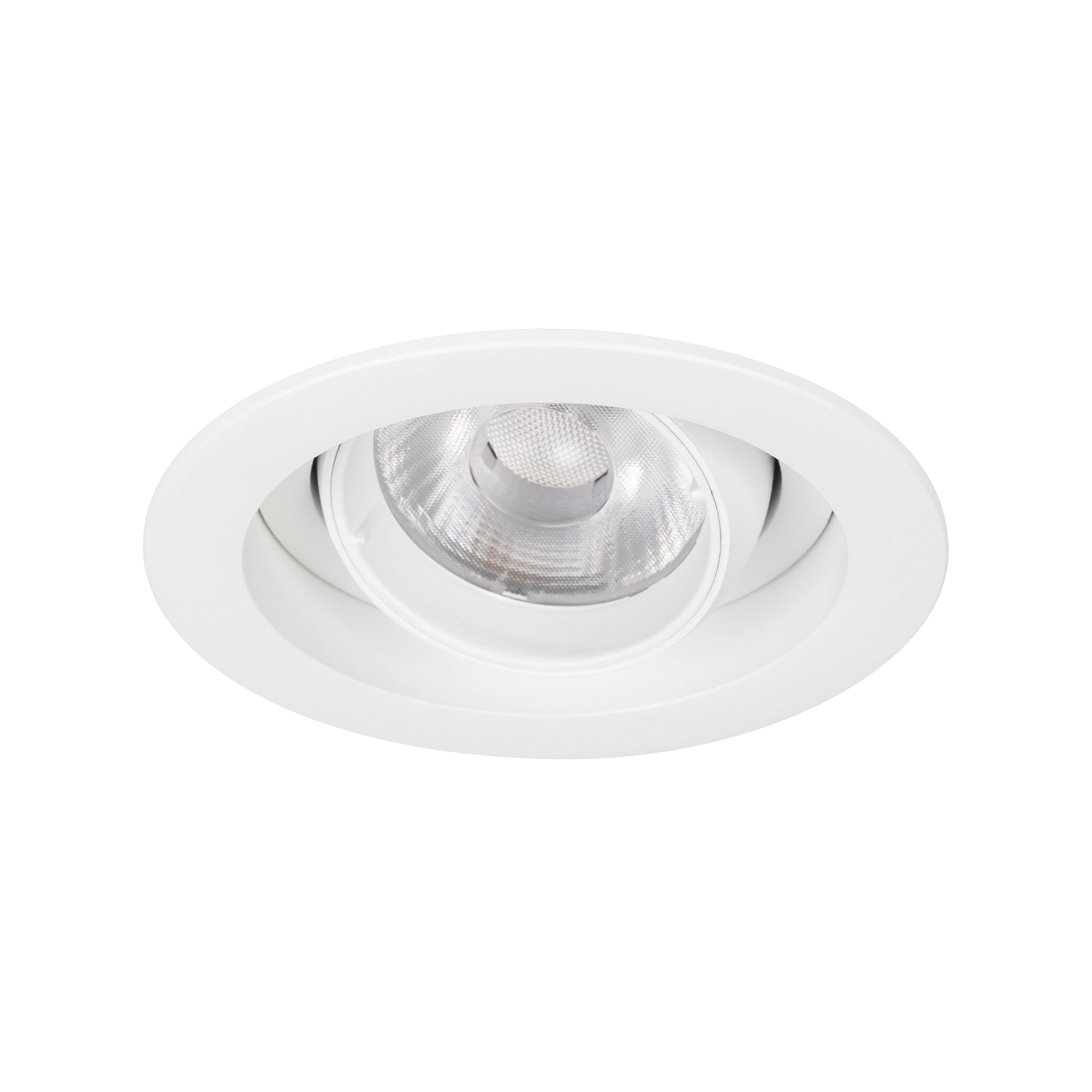Встраиваемый карданный светильник. Мощность 12 Вт, св. поток 1394 лм, 116 лм/Вт, тёплый 4000 K, CRI>92, угол 40°, напряжение питания 230 В. Белый корпус из алюминия, белая вставка, степень защиты IP20. Размер: диаметр 90 мм, высота 80 мм. Монтаж встраиваемый, установочное отверстие: диаметр 75мм. Драйвер 27-40 В, 300 мА, пульсация <2%.