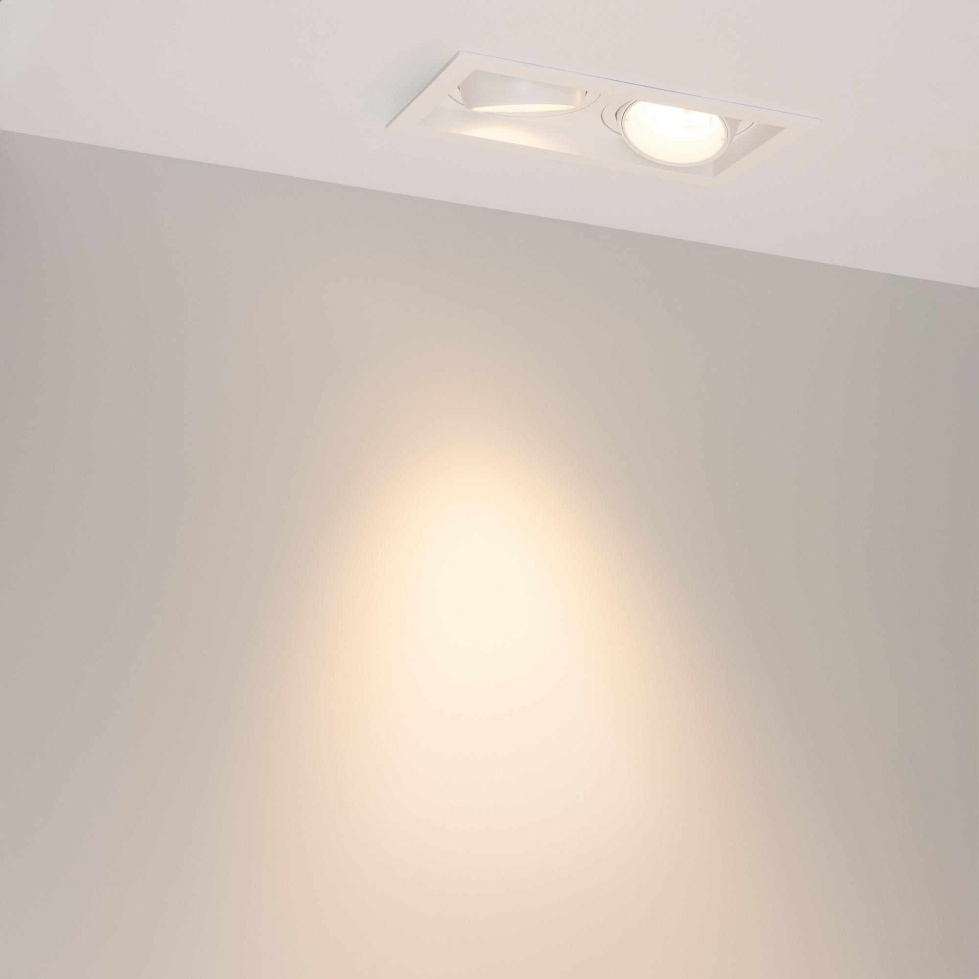 Встраиваемый карданный светильник. Мощность 2х20 Вт, св. поток 4264 лм, 106 лм/Вт, дневной 3000 K, CRI>92, угол 40°, напряжение питания 230 В. Белый корпус из алюминия, черная вставка, степень защиты IP20. Размер: длина 210 мм, ширина 117 мм, высота 105 мм. Монтаж встраиваемый, установочное отверстие: длина 190 мм, ширина 95 мм. Драйвер 24-42 В, 500 мА, пульсация <2%.
