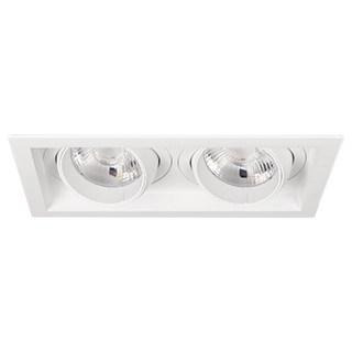 Встраиваемый карданный светильник. Мощность 2х30 Вт, св. поток 6208 лм, 103 лм/Вт, дневной 4000 K, CRI>92, угол 17°, напряжение питания 230 В. Белый корпус из алюминия, черная вставка, степень защиты IP20. Размер: длина 250 мм, ширина 140 мм, высота 125 мм. Монтаж встраиваемый, установочное отверстие: длина 230 мм, ширина 120 мм. Драйвер 24-42 В, 750 мА, пульсация <2%.