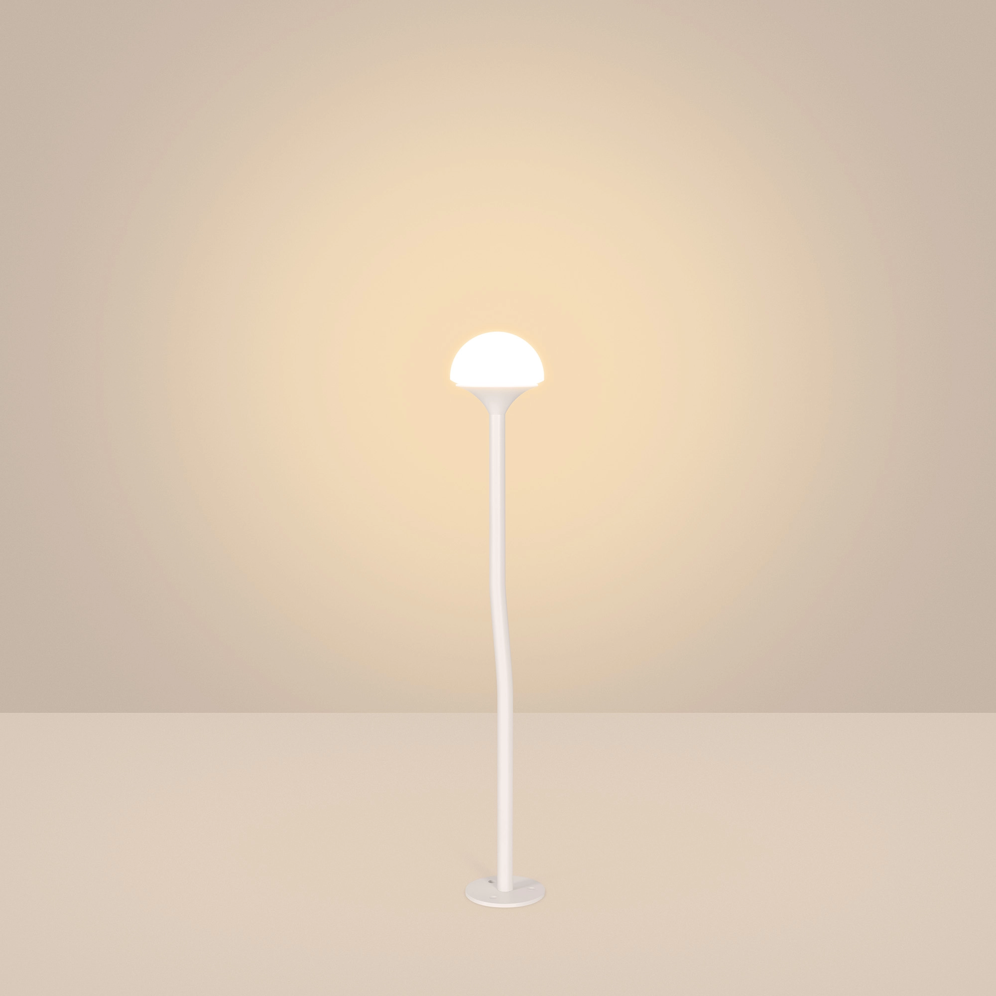 Уличный декоративный светодиодный светильник. Мощность 1 Вт, св. поток 111 лм, 122 лм/Вт, теплый 3000 K, CRI>80, угол излучения 85° напряжение питания 24 В. Белый корпус из алюминия, прозрачный матовый рассеиватель из PMMA. Степень защиты IP65. Размер: диаметр 58 мм, высота 355 мм, высота углубления 155 мм. Монтаж в грунт с помощью основания пика (входит в комплект поставки).