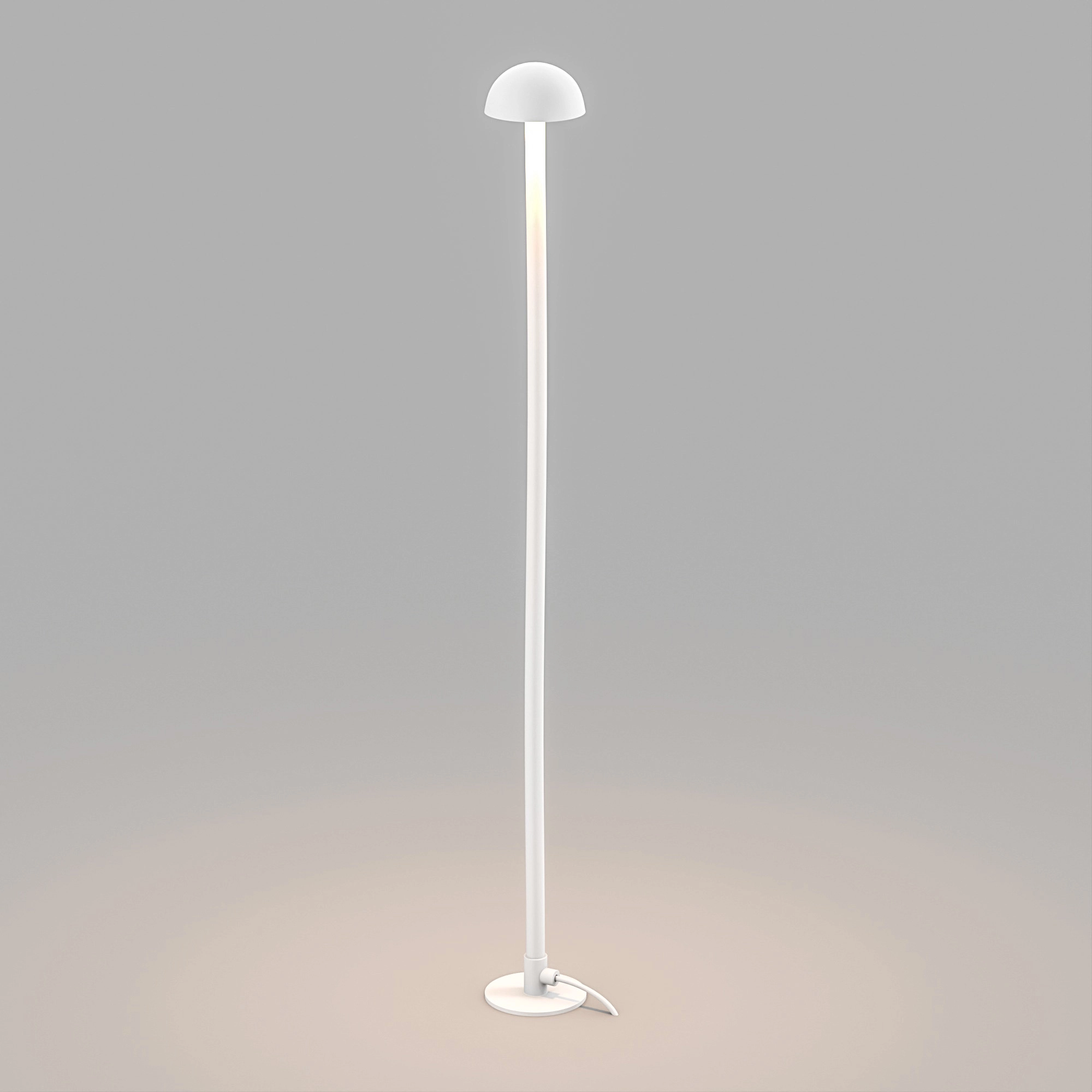 Уличный декоративный светодиодный светильник. Мощность 2,5 Вт, св. поток 200 лм, 100 лм/Вт, теплый 3000 K, CRI>80, угол излучения 100° напряжение питания 24 В. Белый корпус из алюминия, прозрачный матовый рассеиватель из PMMA. Степень защиты IP65. Размер: диаметр 60 мм, высота 600 мм, высота углубления 160 мм. Монтаж в грунт с помощью основания пика (входит в комплект поставки).