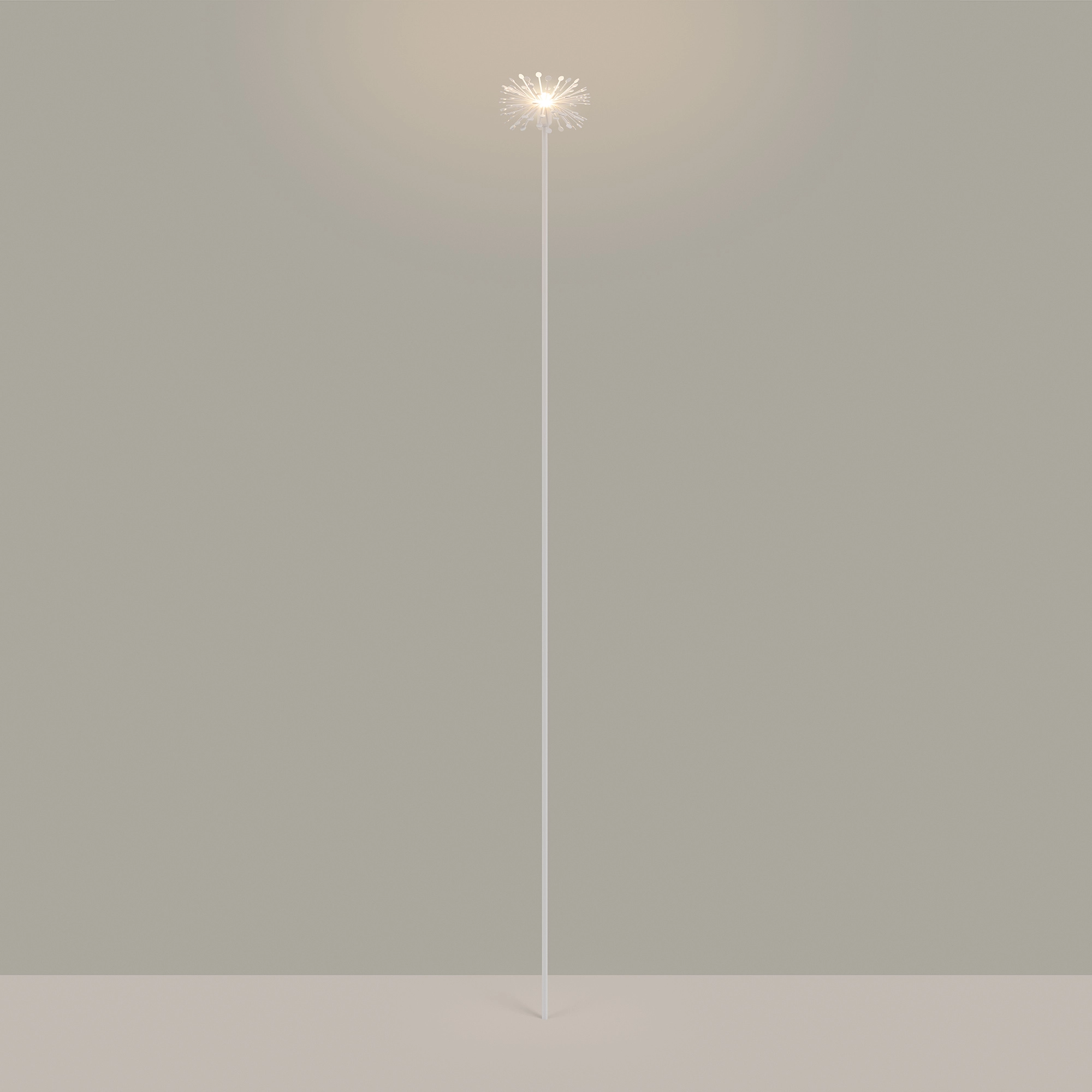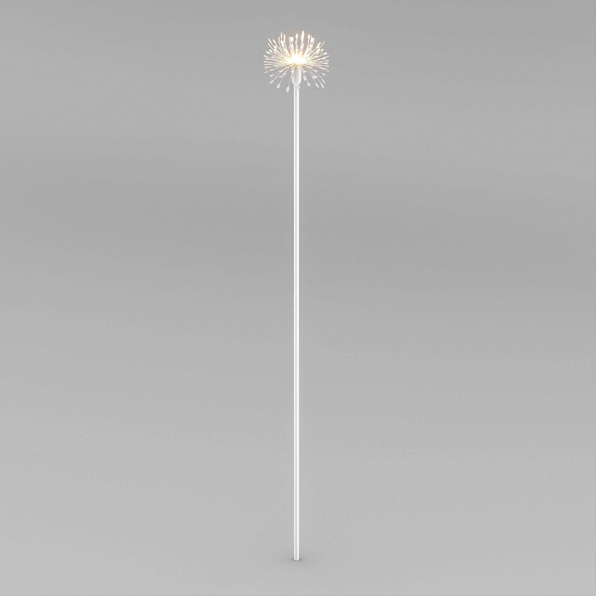 Уличный декоративный светодиодный светильник. Мощность 0.5 Вт, св. поток 13 лм, 92 лм/Вт, теплый 3000 K, CRI>80, угол излучения 24°, напряжение питания 24 В. Белый корпус из алюминия, прозрачный матовый рассеиватель из PMMA. Степень защиты IP65. Размер: диаметр 105 мм, высота 895 мм, высота углубления 155 мм. Монтаж в грунт с помощью основания пика (входит в комплект поставки).