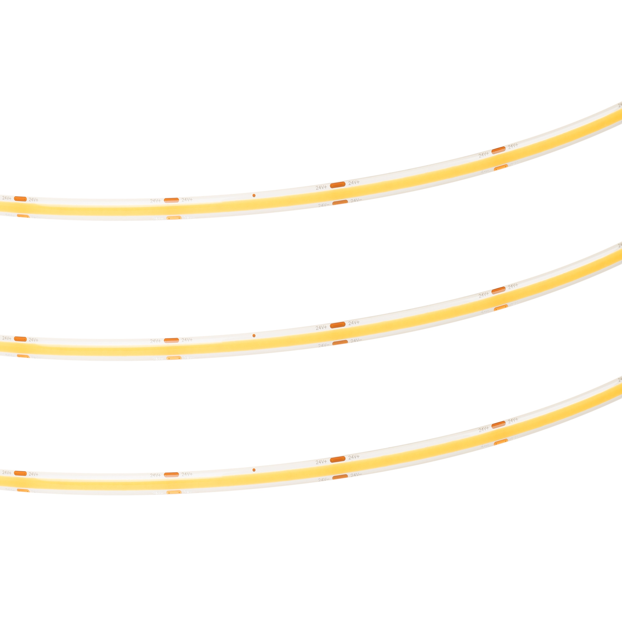 Светодиодная герметичная лента сплошного свечения COB серии X378, IP65 (SE - силиконовый верхний слой). Светодиоды CSP, 378 шт/м, белая плата шириной 8 мм, скотч 3M. Цвет свечения ТЕПЛЫЙ 3000K, индекс цветопередачи CRI>90, угол 150°. Мощность 11 Вт/м (55 Вт на 5м), питание 24 В. Размеры 5000х8х2.3 мм. Мин. отрезок 55.55 мм. Цена за 1 м. Рекомендуется установка на профиль.