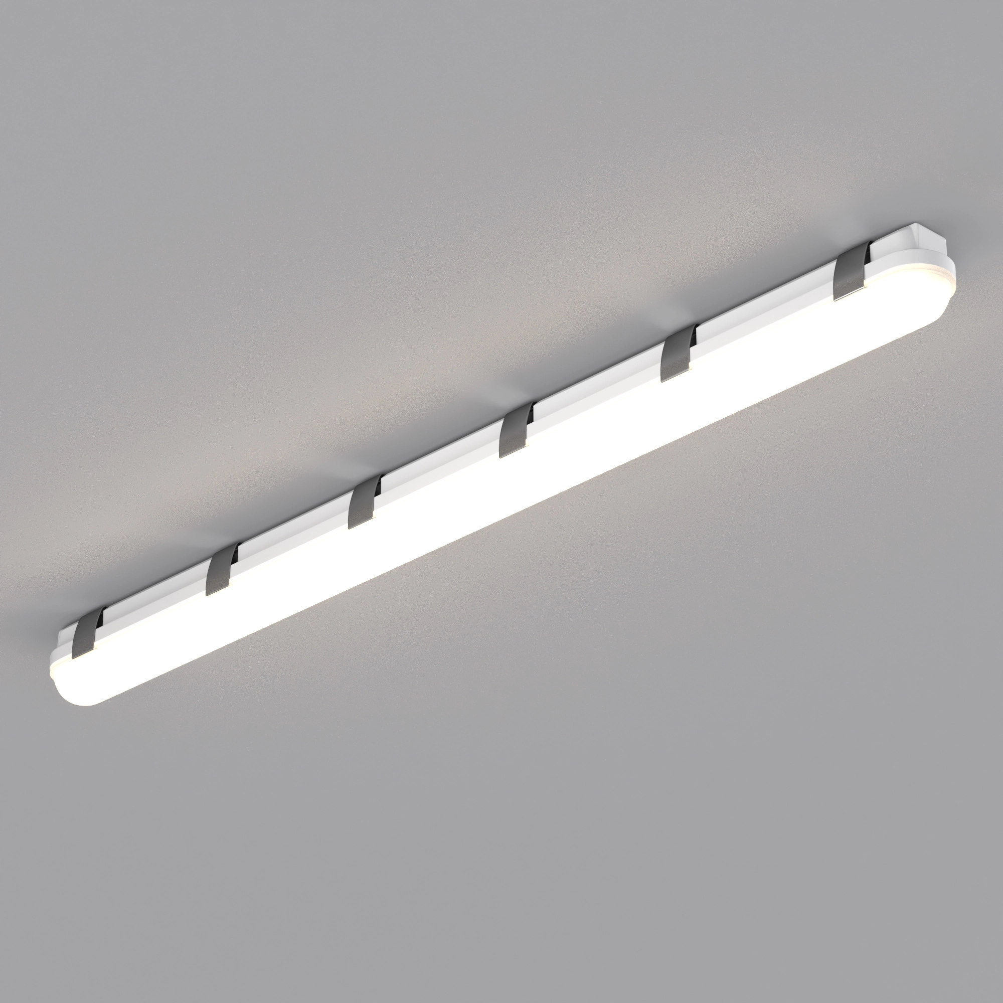 Влагозащищенный линейный светильник для использования в технических помещениях. Мощность светильника 40/35/30/25 Вт. (переключатель на корпусе драйвера). Цвет свечения ДНЕВНОЙ 4000К/ТЕПЛЫЙ 3000К/ХОЛОДНЫЙ 6000К (переключатель на корпусе драйвера), св.поток 5920-6240 лм, CRI(Ra)>80, угол свечения 120°. Корпус прямоугольный, белый пластик, влагозащищенный IP66. Ударопрочность IK08. Размер LxWxH 1150x70x80мм. Питание AC 220-240В, 40 Вт, драйвер встроенный. Температура применения -20°C...+50°C.