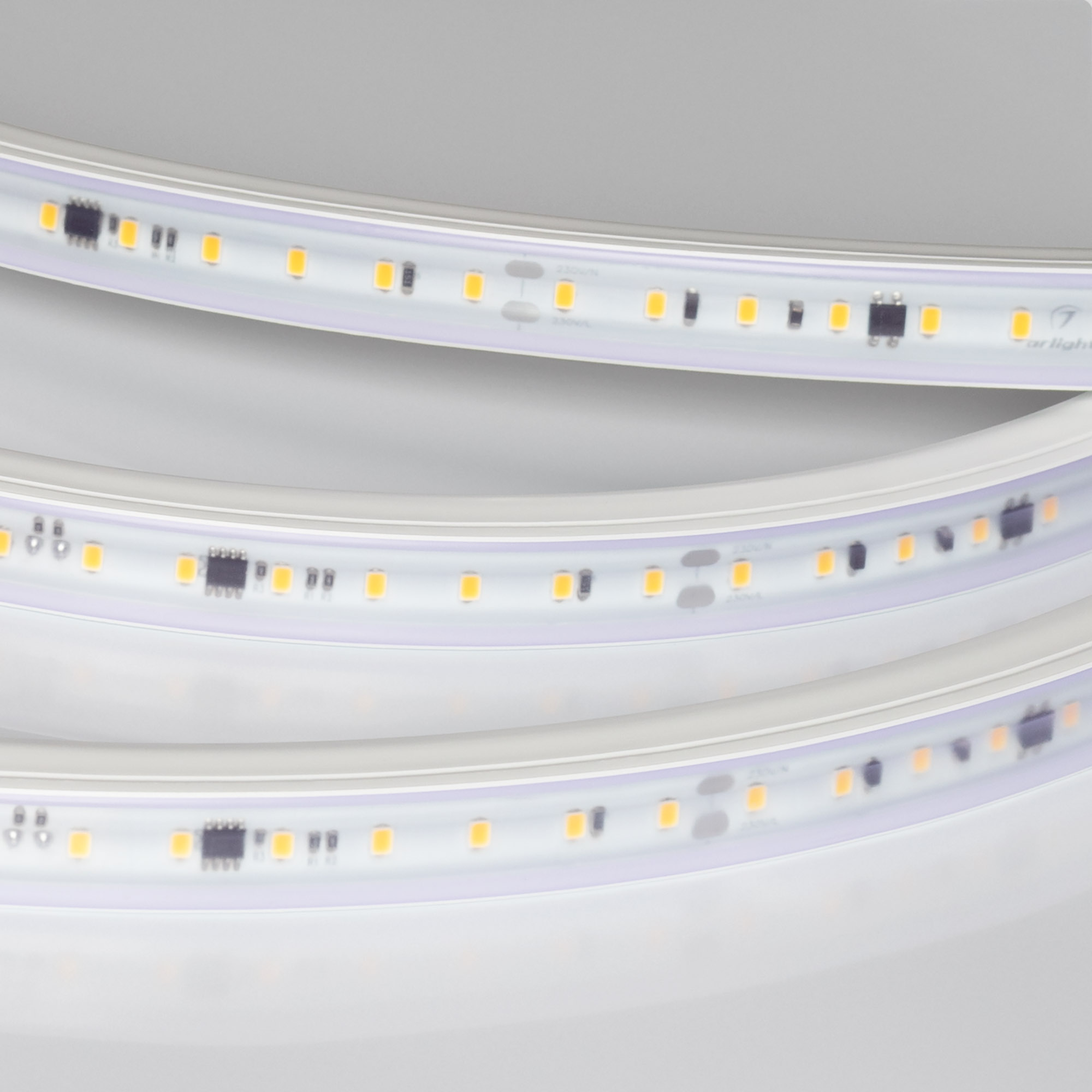 Светодиодная герметичная лента ARL серии A84, IP65 (PVC-трубка ПВХ экструзия). Светодиоды SMD 2835, 84 шт/м, белая плата шириной 14 мм. Цвет ДНЕВНОЙ 4000 K, индекс цветопередачи CRI>85, угол 120°. Питание 230V, мощность 14 Вт/м (140 Вт на 10 м), коэффициент мощности PF>0.75. Размеры 10000x17x13.2 мм. Мин. отрезок 166.7 мм, 14 светодиодов. Цена за 1 м. Лента крепится с помощью скоб (приобретаются отдельно), 3M скотч отсутствует.