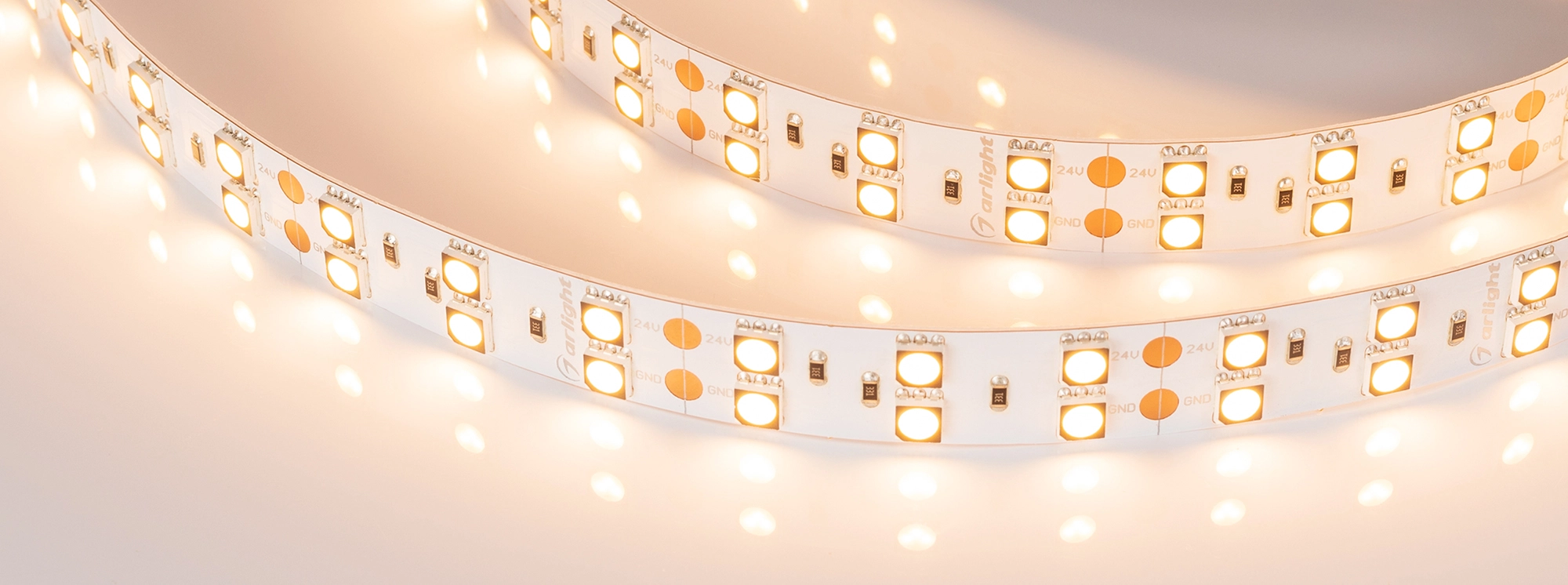 Мощность – один из критериев оценки яркости светодиодной ленты. Традиционно считают, что от мощности ленты напрямую зависит количество света. Ленты Arlight белого цвета выдают от 50 до 155 лм на 1 Вт мощности. Условно считается, что 7 Вт ленты заменяют 1