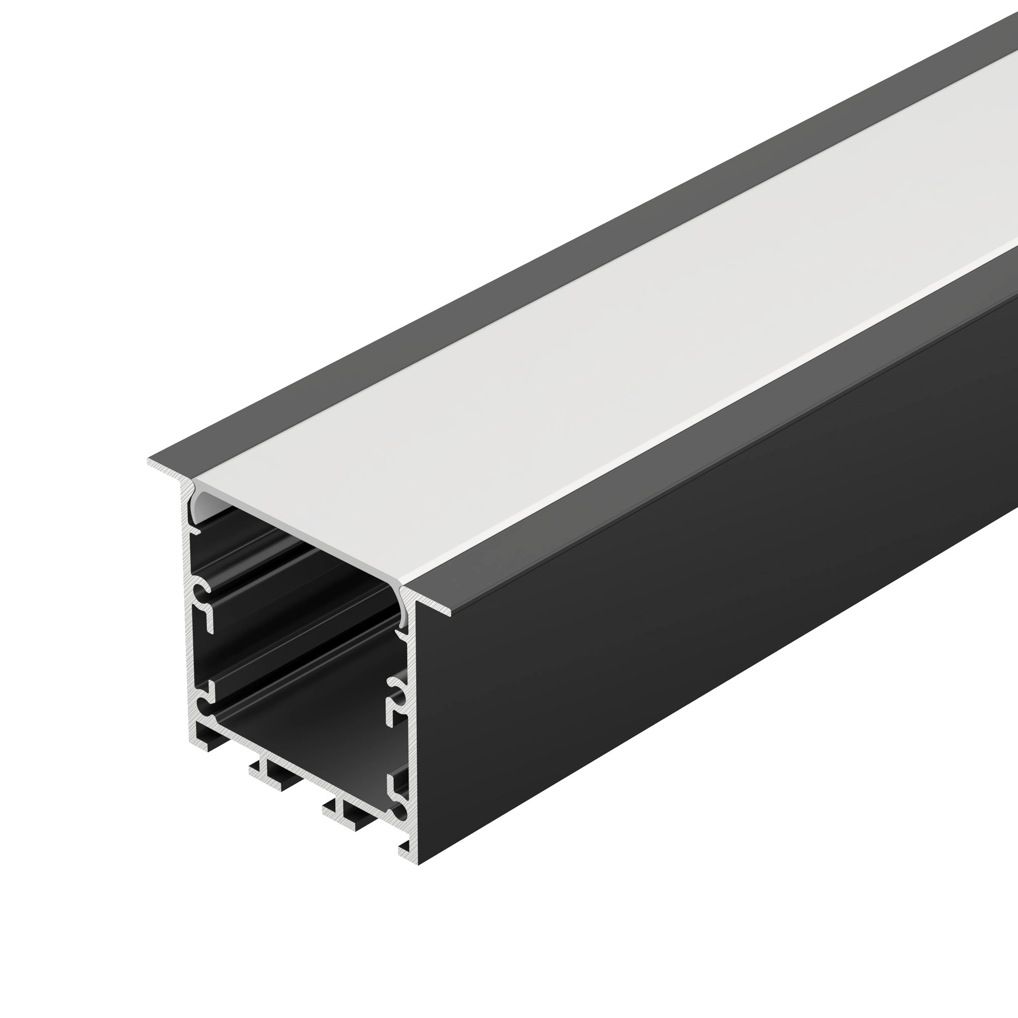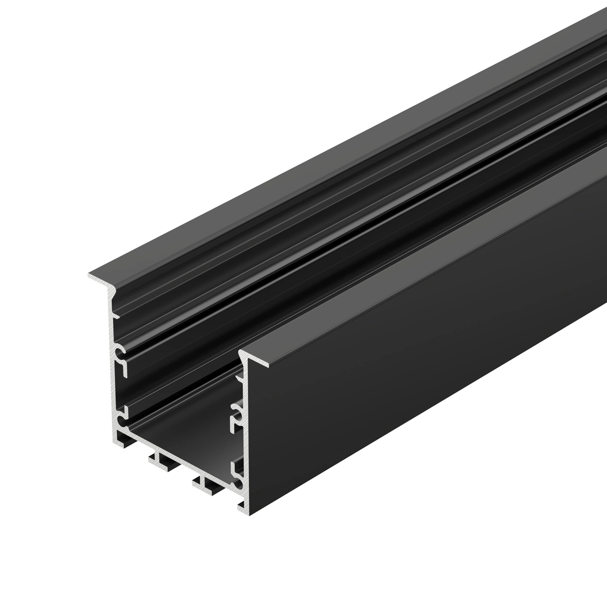 Алюминиевый профиль для светодиодных лент и линеек. Цвет - черный RAL9005 (порошковая окраска). Габаритные размеры (L×W×H): 2000x46x35,5 мм. Ширина площадки для ленты 26 мм. Экраны, заглушки и другие аксессуары приобретаются отдельно. Цена за 1 метр.