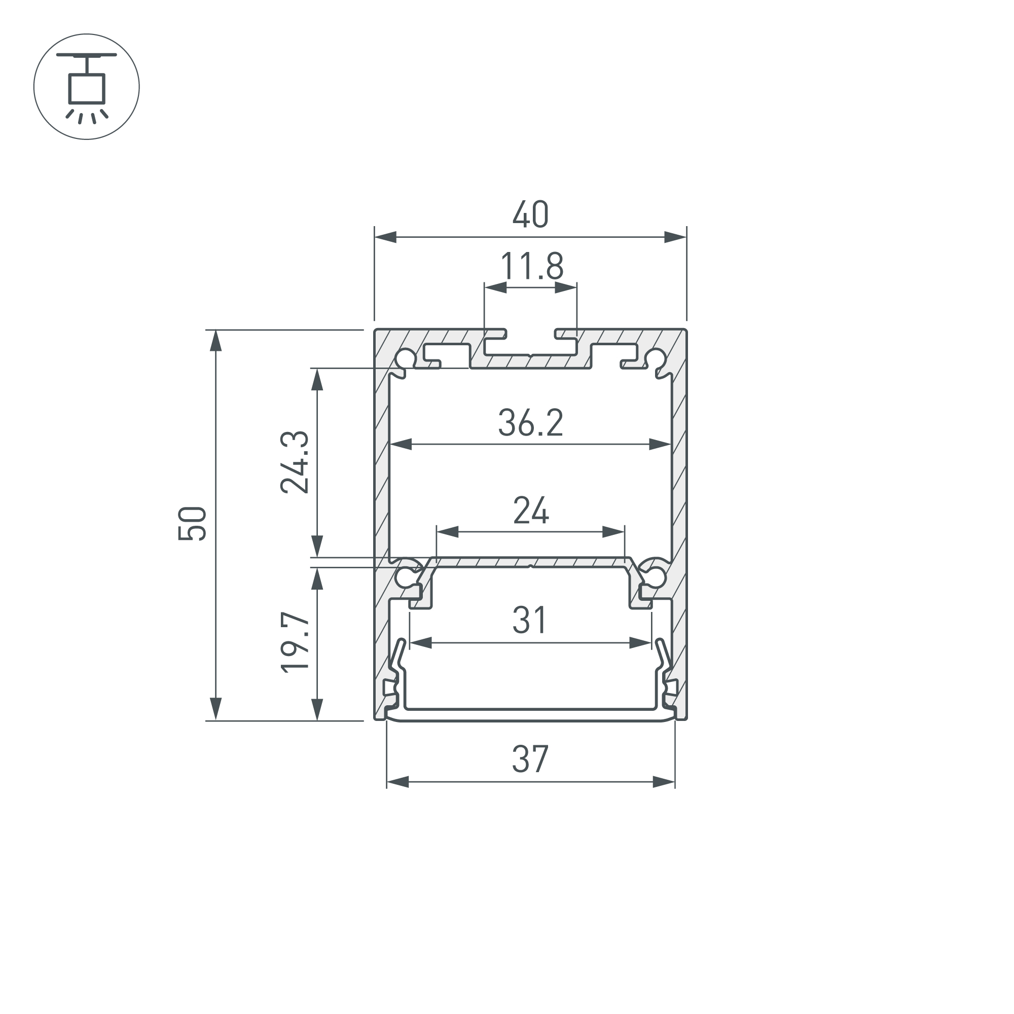 Алюминиевый профиль для светодиодных лент и линеек с возможностью герметизации до IP65. Цвет - чёрный (порошковая окраска). Габаритные размеры профиля (L×W×H): 2000x40x50 мм. Ширина площадки для ленты 24 мм. Экраны, заглушки и другие аксессуары приобретаются отдельно. Цена за 1 метр.