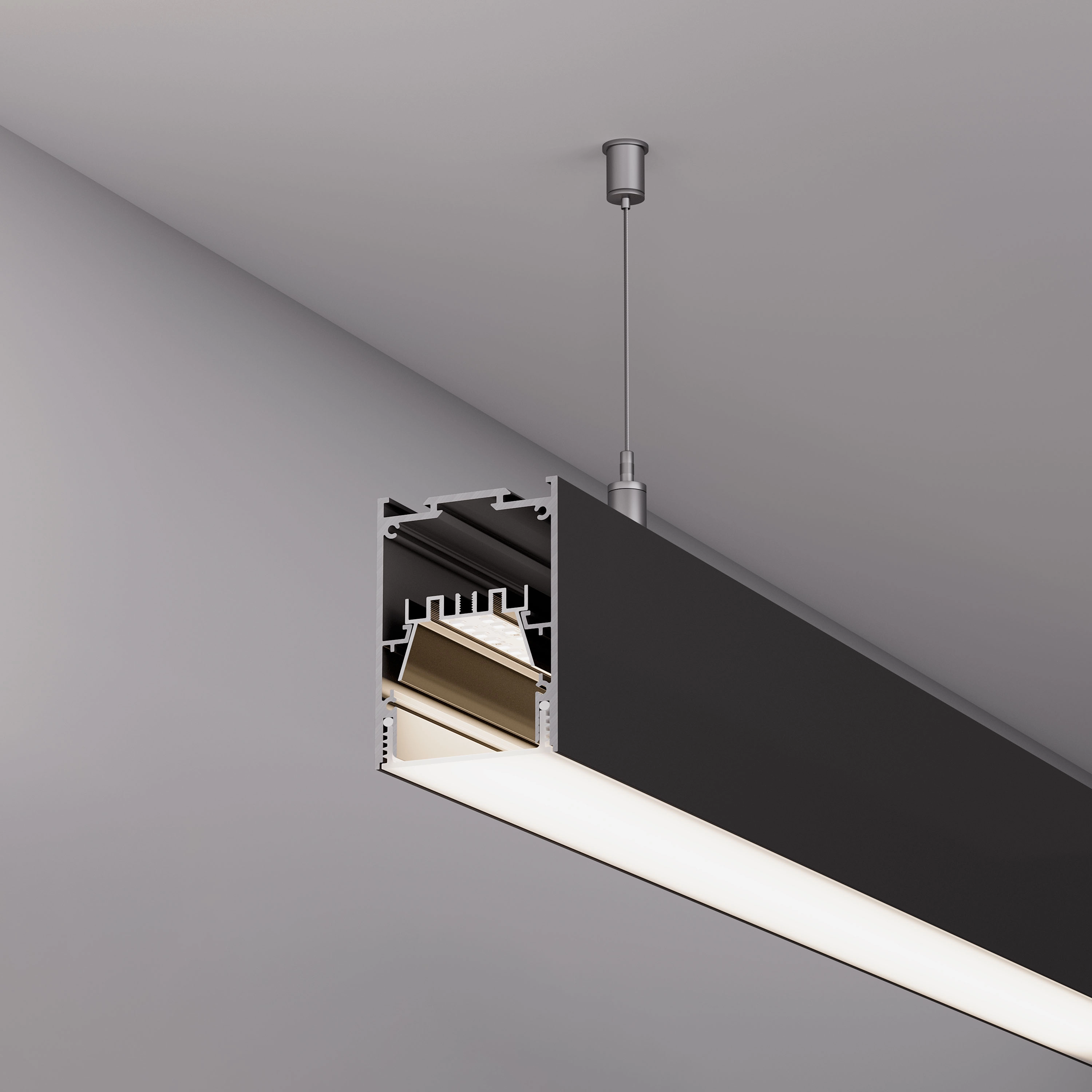 Алюминиевый профиль для светодиодных лент и линеек с возможностью герметизации до IP65. Цвет - чёрный (порошковая окраска). Габаритные размеры профиля (L×W×H): 2000x54x75 мм. Ширина площадки для ленты 16 мм. Экраны, заглушки и другие аксессуары приобретаются отдельно. Цена за 1 метр.