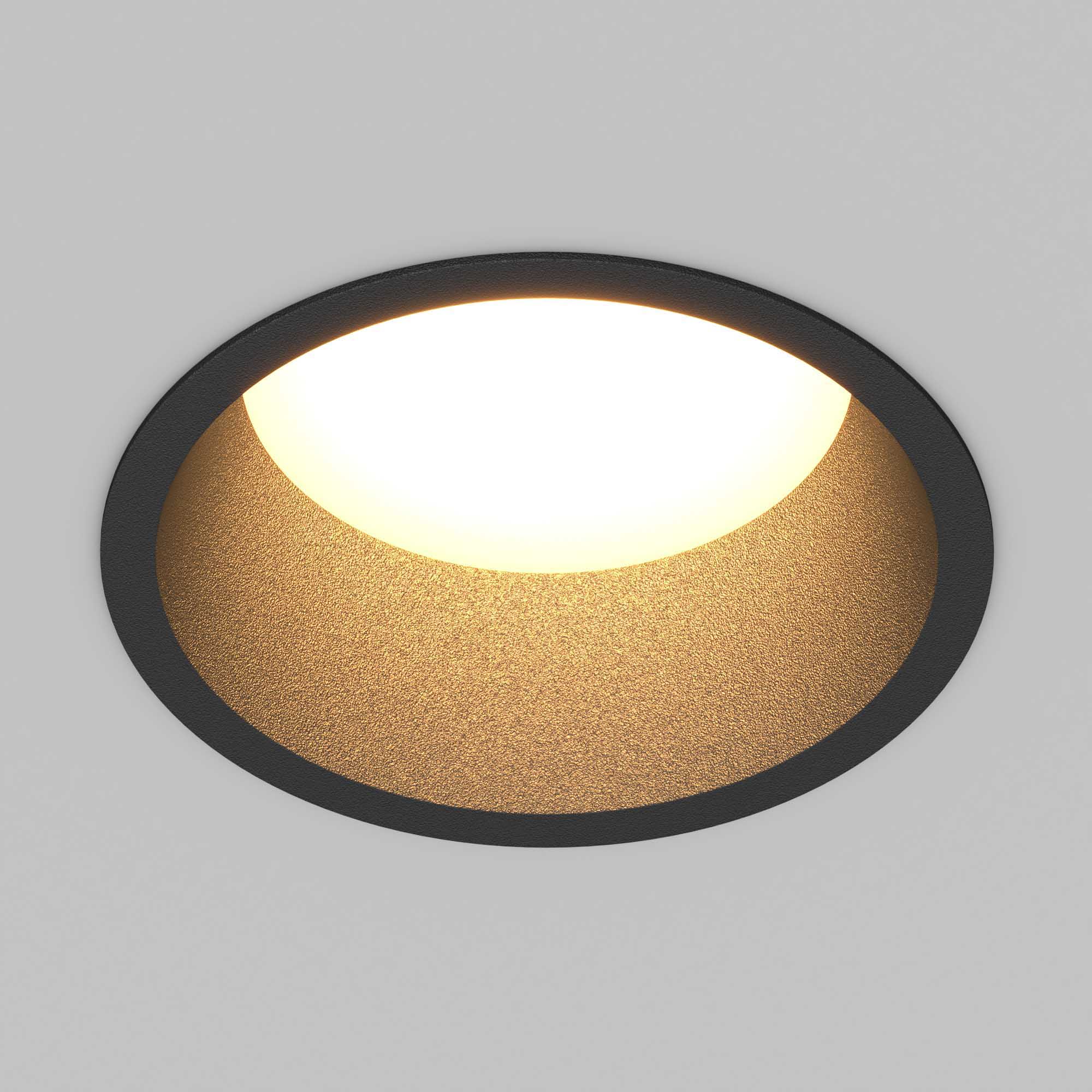 Встраиваемый светильник даунлайт. Мощность 9 Вт, св. поток 500 лм, 56 лм/Вт, тёплый 2700 K, CRI>90, угол 80°, напряжение питания 230 В. Чёрный круглый корпус из алюминия, степень защиты IP20. Размер: диаметр 82 мм, высота 46 мм. Монтаж встраиваемый, установочное отверстие: диаметр 75 мм. Драйвер 27-42 В, 200 мА, пульсация <2%.