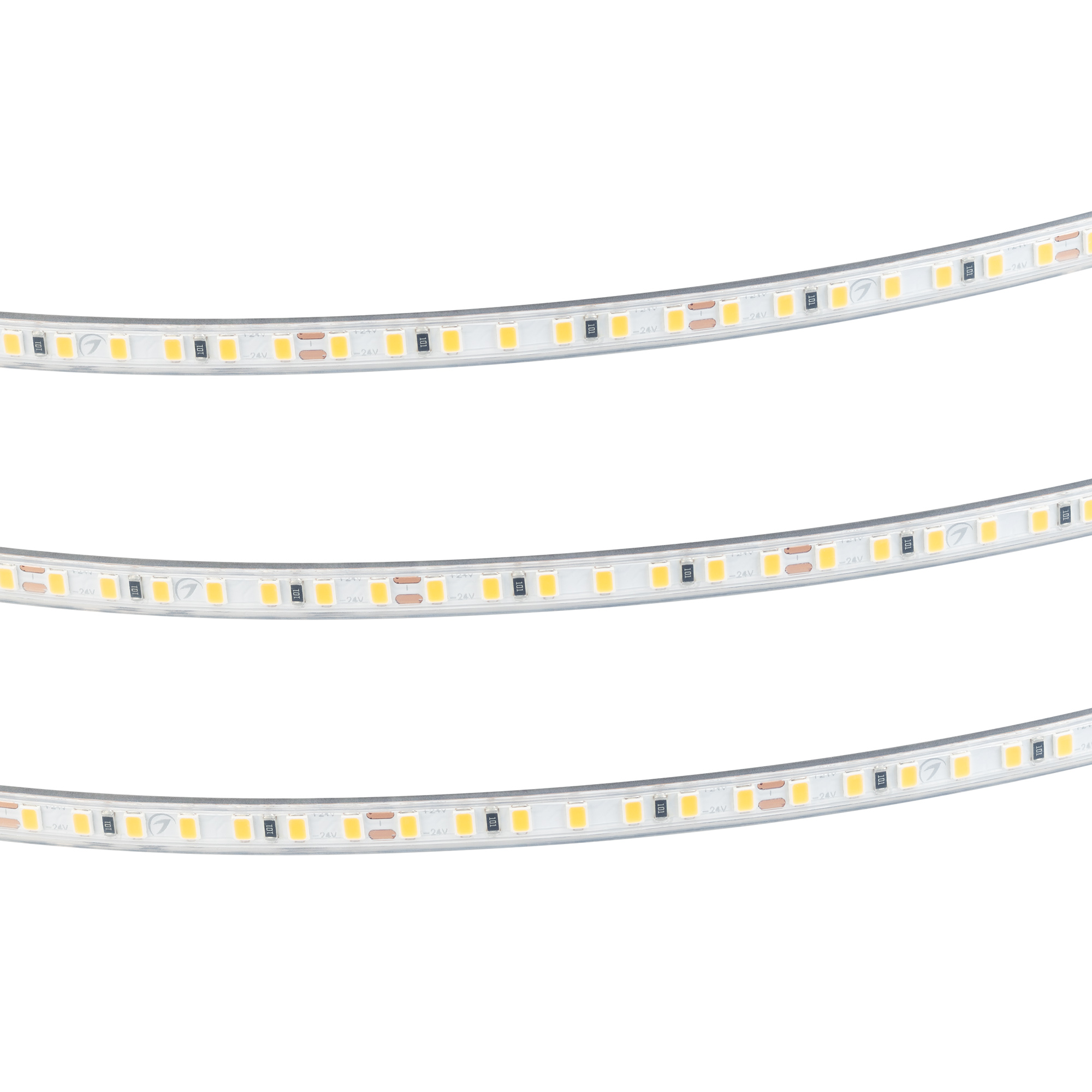 Узкая герметичная лента RTW серии A140, IP67 (PS - силиконовая экструзия). Светодиоды SMD 2835, 140 шт/м, белая плата шириной 5 мм, скотч 3M. Цвет ДНЕВНОЙ 4000K, индекс цветопередачи CRI>90, угол 120°. Питание 24 В, мощность 10 Вт/м (50 Вт на 5 м). Размеры 5000x7x4.5 мм. Мин. отрезок 50 мм, 7 светодиодов. Цена за 1 м. Обязательна установка на профиль.