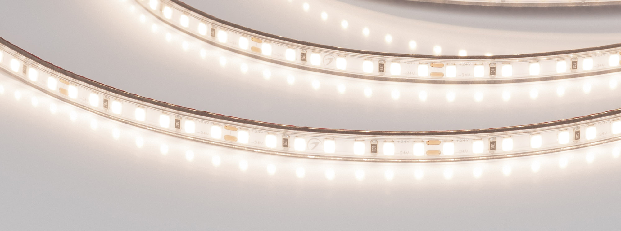 Мощность – один из критериев оценки яркости светодиодной ленты. Традиционно считают, что от мощности ленты напрямую зависит количество света. Ленты Arlight белого цвета выдают от 50 до 155 лм на 1 Вт мощности. Условно считается, что 7 Вт ленты заменяют 1