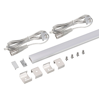 В комплект входят: алюминиевый анодированный профиль 2000 мм, матовый экран 2000 мм, пластиковые глухие заглушки - 2 шт., заглушки с выводом питания 5.5DC Female - 2 шт., металлические держатели - 4 шт., шурупы - 4шт., светодиодной ленты FC-M200.
