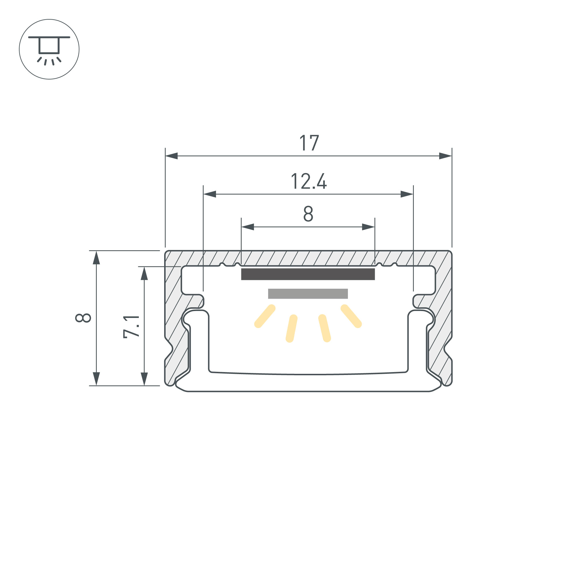 Габаритные размеры (L×W×H): 2000x17x8 мм.