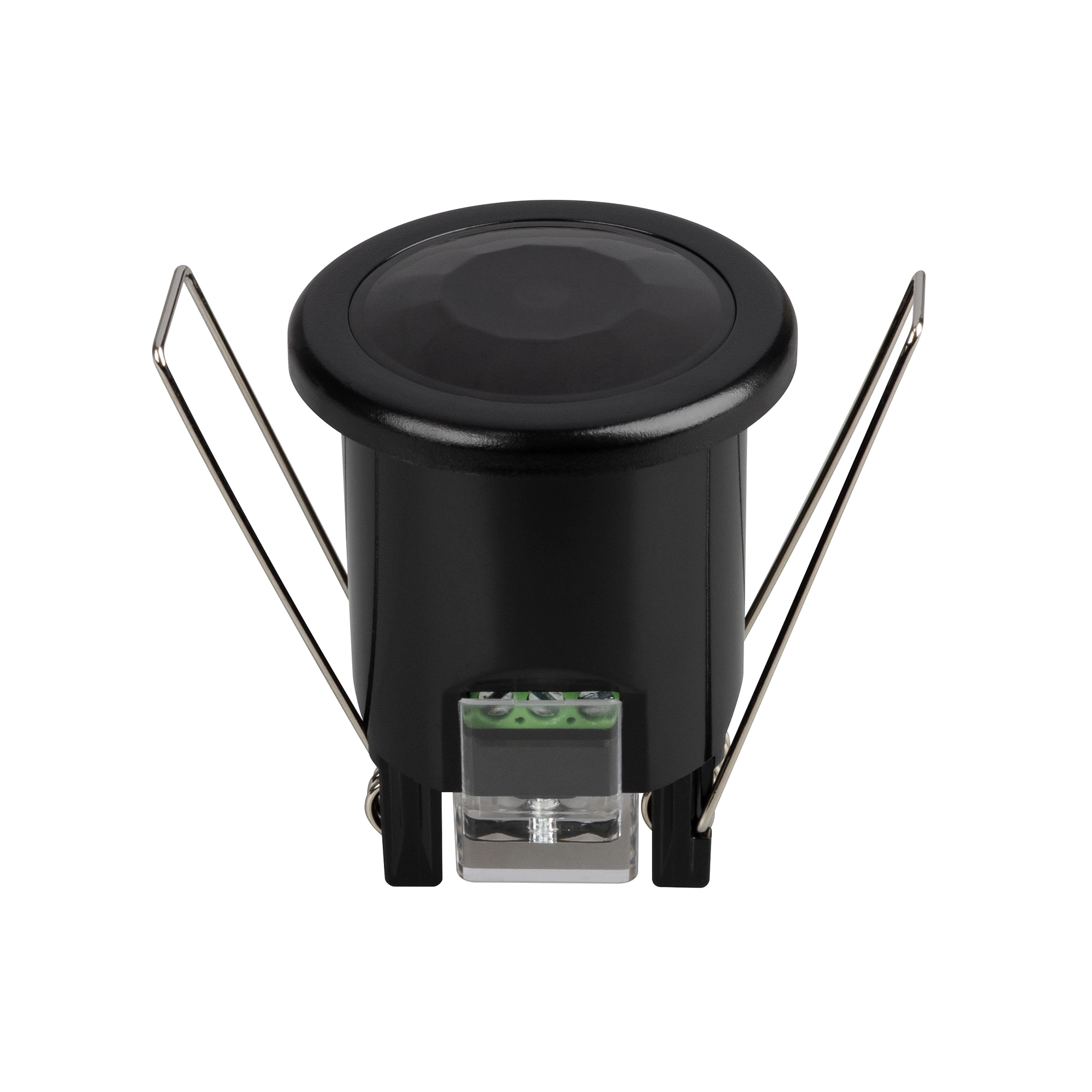Инфракрасный датчик движения, совмещенный с датчиком освещенности. Высота установки - 2.2 - 4 м. Угол обнаружения 360°. Настройки: время отключения (10 c – 15 мин), зона срабатывания (до 8 м), освещенность (3 - 2000 люкс). Максимальная нагрузка 800 Вт (для ламп накал-я и галогенных), 400 Вт (для светодиодных и люминесцентных ламп), размеры (ØxH) - 50х63мм, установочное отверстие (Ø) - 42 мм. Коммутатор - реле. Черный цвет будет гармонично соответствовать вашему интерьеру и не выделяться на фоне.