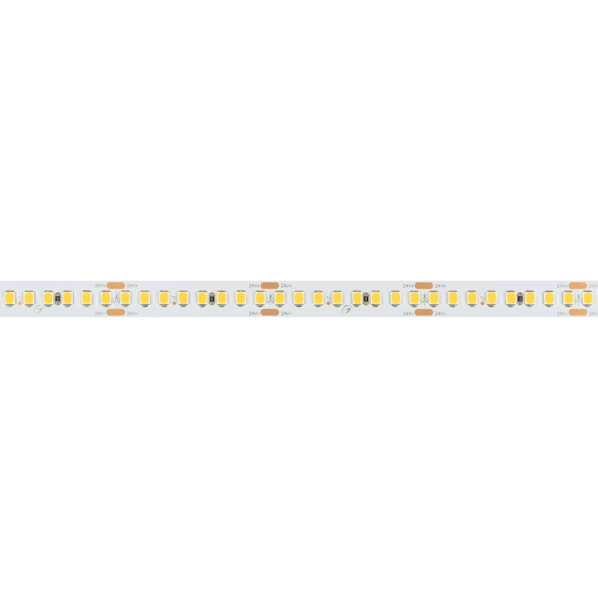 Светодиодная высокоэффективная лента RT серии A192. Светодиоды SMD 2835, 192 шт/м, белая плата шириной 10 мм, скотч 3M. Цвет ДНЕВНОЙ 4000K, высокая световая эффективность 150 лм/Вт, индекс цветопередачи CRI>85, угол 120°. Питание 24 В, мощность 17.6 Вт/м (88 Вт на 5 м). Размеры 5000x10x1.6 мм. Мин. отрезок 41.67 мм, 8 светодиодов. Цена за 1 м. Обязательна установка на профиль.